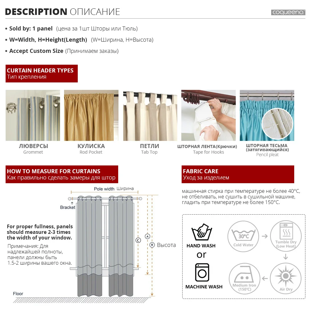 W = ширина, H = высота (или длина) Доступно на заказ. Если вы не можете найти нужный вам размер из вариантов, пожалуйста, свяжитесь с нами. Цена указана за 1 занавеску, а не 1 пару, если вам нужна 1 пара занавесок, как на картинке, пожалуйста, закажите 2 штуки Для обработки штор требуется около 3-5 дней. Если вам это нужно срочно, пожалуйста, свяжитесь с нами. Все шторы ручной работы, так как это индивидуальный дизайн, может быть отклонение на 2-5 см. Небольшая разница в цвете может возникнуть из-за разницы между онлайн-фотографией и фактическим товаром, это является результатом настроек освещения и дисплея Для правильной полноты панели должны измерять в 2-3 раза ширину вашего окна (или занавес полюса и дорожки) Крючки не включены для 100% успешного таможенного оформления, если вам действительно нужны крючки, свяжитесь с нами.