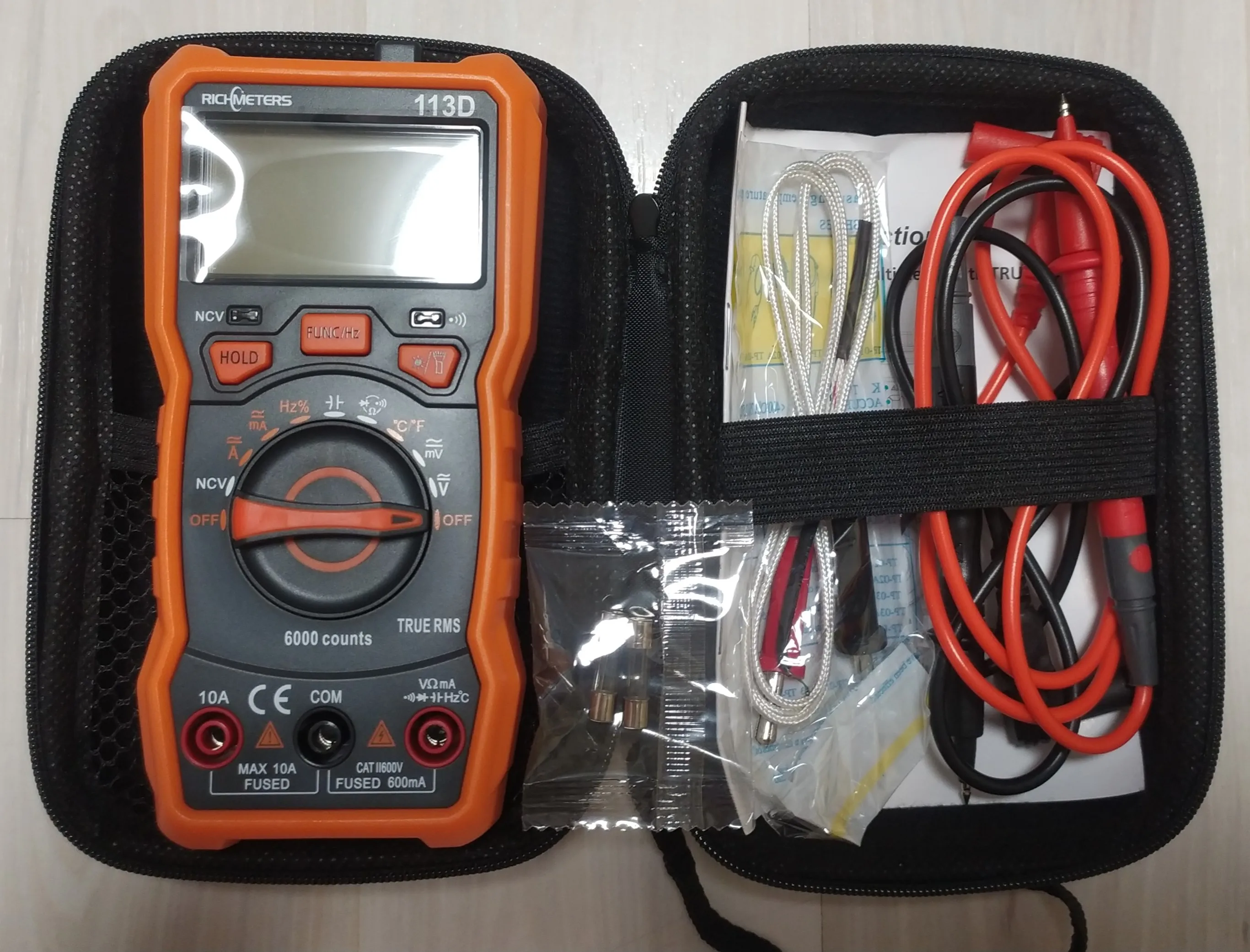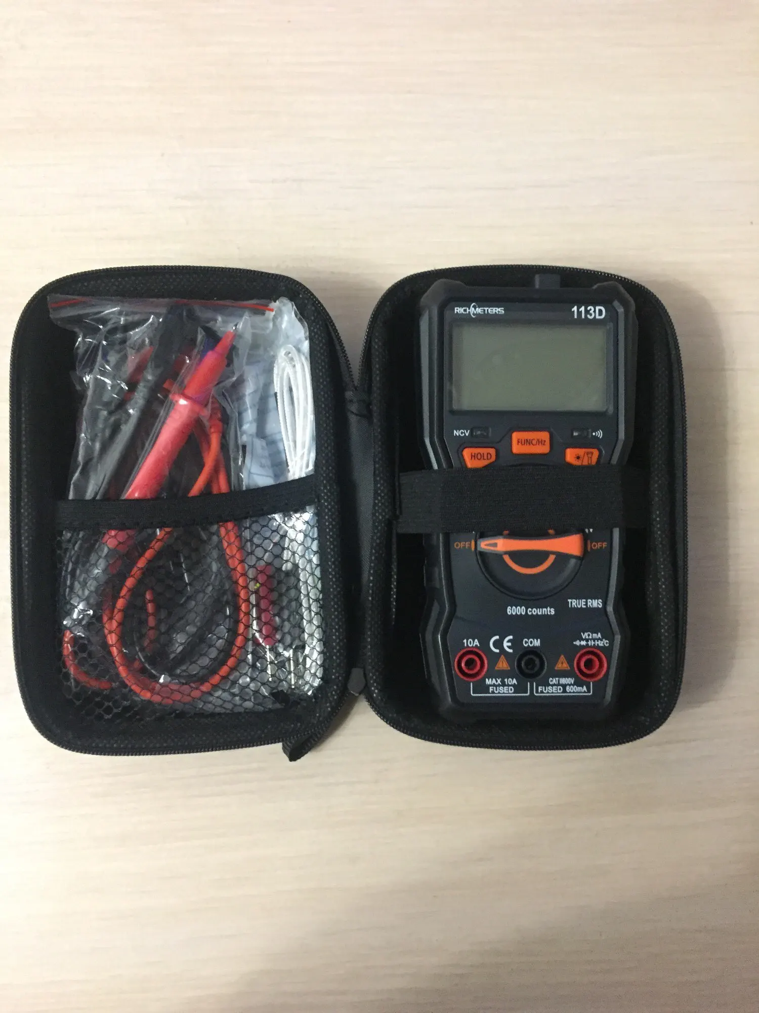 Доставка меньше 3х недель и это в новогодние праздники! Удобный кейс, как раз по размеру мультиметра Richmeters RM113D. Плотно помещается сам мультиметр, щупы и термосопротивление. Рекомендую к покупке.