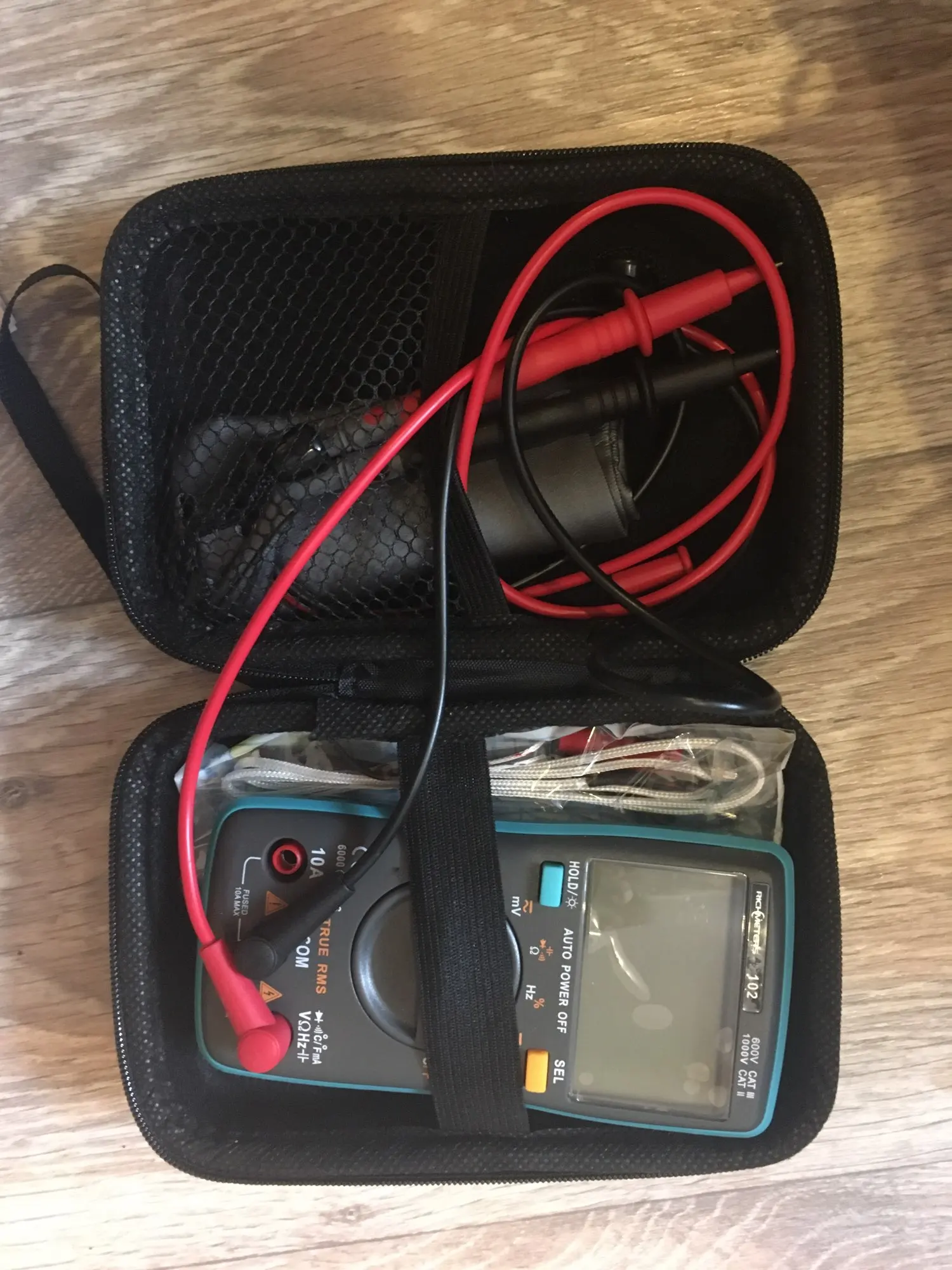Кейс идеально подходит к мультиметру. Помещаются дополнительные щупы и приблуды. Пришел быстро и без повреждений. Рекомендую продавца.