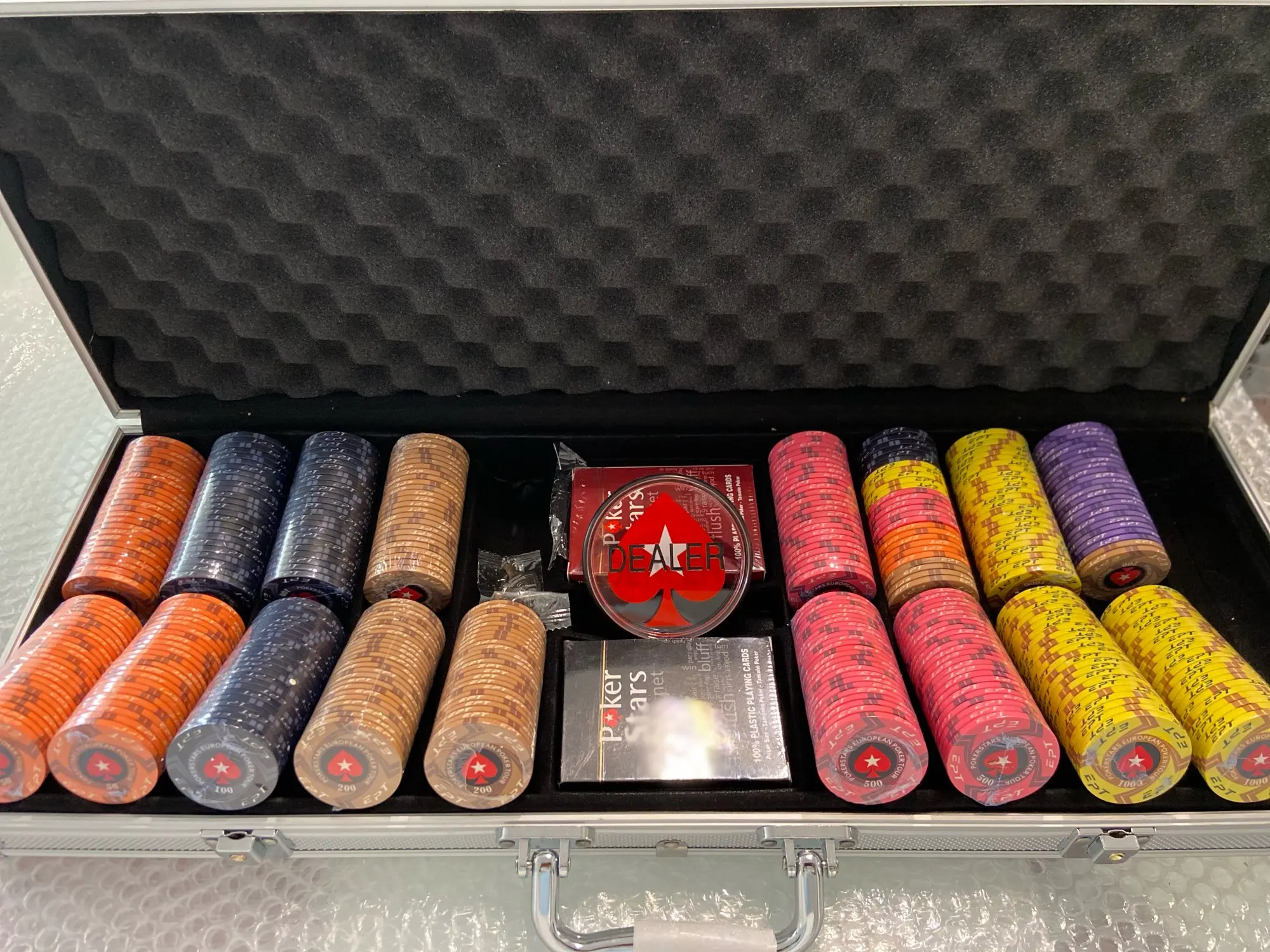 Высокое качество, 500 шт., чехол для покерных фишек, чехол для чип-контейнер фишек, алюминиевый, серебристый, черный