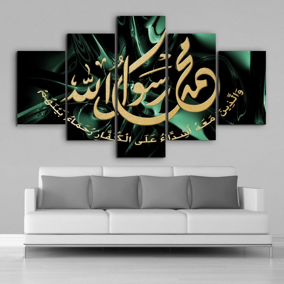Исламское настенное искусство, 5 штук, исламский холст с каллиграфией, печать, арабские цитаты, картины, постеры, настенные картины, декор для гостиной, рамка