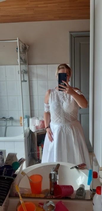 После прочтения отзывов Я был рад заказать платье! После задержки в получении платья продавец быстро получил товар по электронной почте. Пожалуйста, обратите внимание, я добавила рукава к своему платью. В целом-очень доволен платьем. Это было идеальное платье