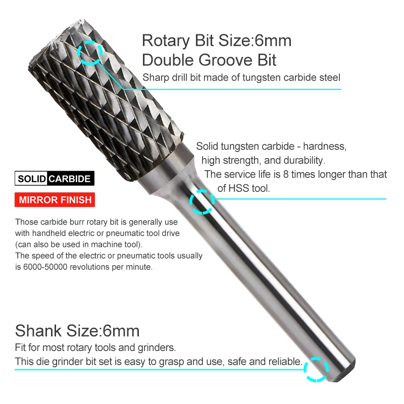 XCAN 1 шт. 6 мм сверло из твердого сплава с двойной насечкой роторные заусенцы 10 диаметр роторный файл механические инструменты аксессуары роторные инструменты