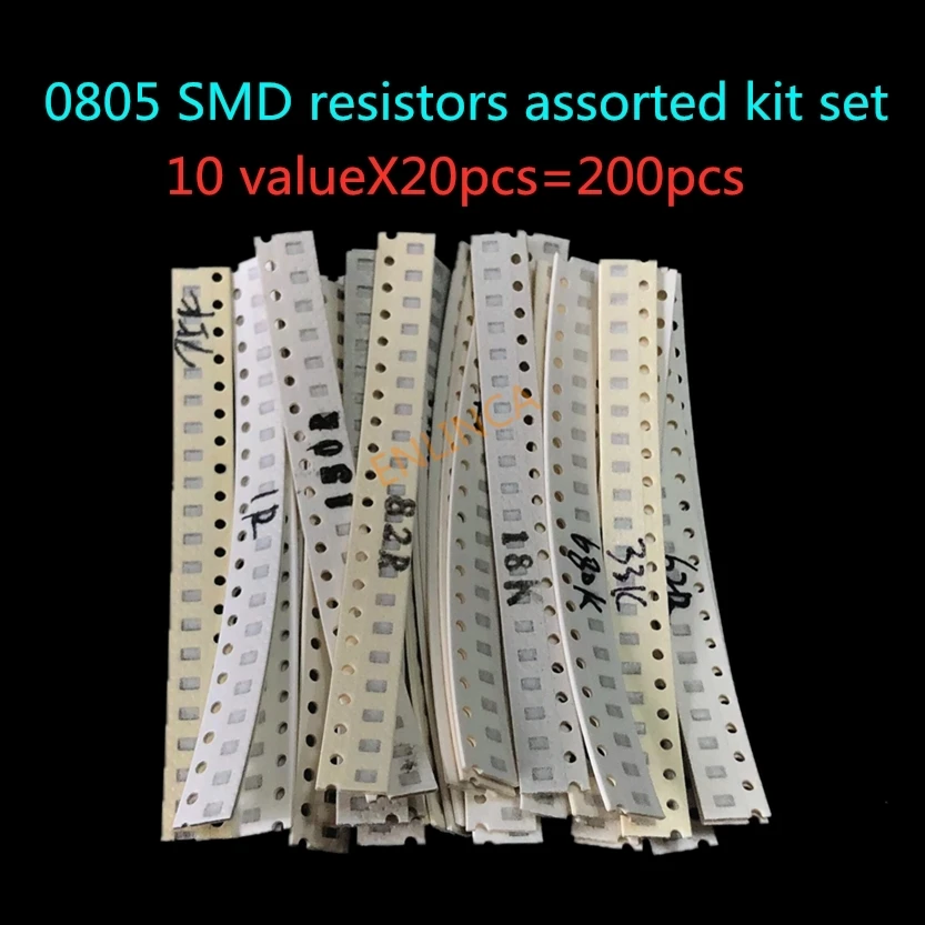200 шт. 1% SMD резисторы, набор в ассортименте, 10 valuex20 шт. = 0805 шт. 1R00 R820 R750 R620 R500 R470 R330 R220 R150 R100