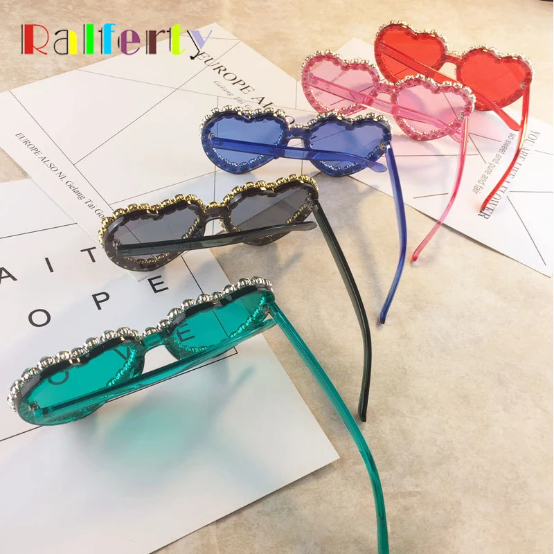 Женские солнцезащитные очки в форме сердца Ralferty, роскошные дизайнерские солнцезащитные очки ручной работы с кристаллами и защитой UV400, прозрачные очки с защитой от ультрафиолета G1911