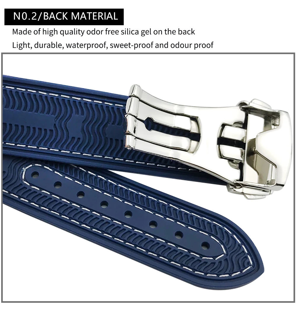 Ремешок резиновый Waterpoof со складной пряжкой для часов Longines ...