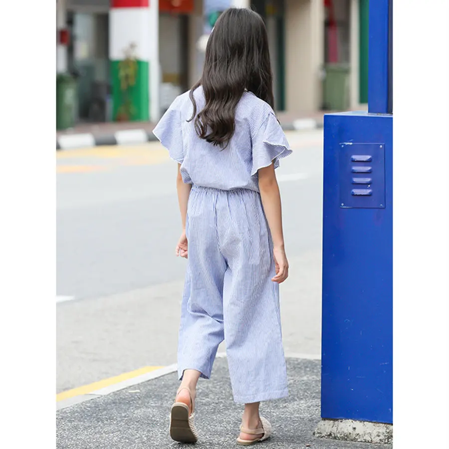 Комплект одежды для девочек-подростков, модный синий топ в полоску и штаны, повседневный комплект для детей 8, 9, 10, 11, 12, 13, 14 лет, летний костюм для девочек