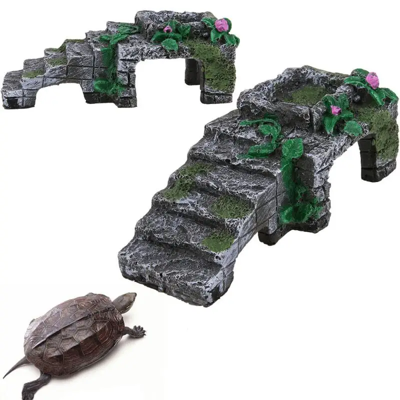Украшение для аквариума из смолы, черепаха, балкон, искусство для скалолазания, с отверстием для отверстия, украшение для аквариума