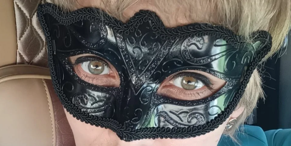 Маска из жесткого пластика с лентами kiczowatymi