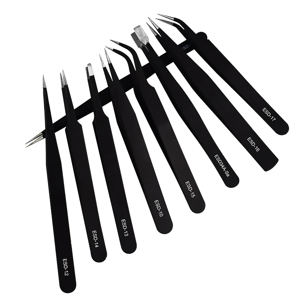Набор промышленных пинцетов Toolour, 9 шт., антистатические, магнитные, из нержавеющей стали, для пайки электроники