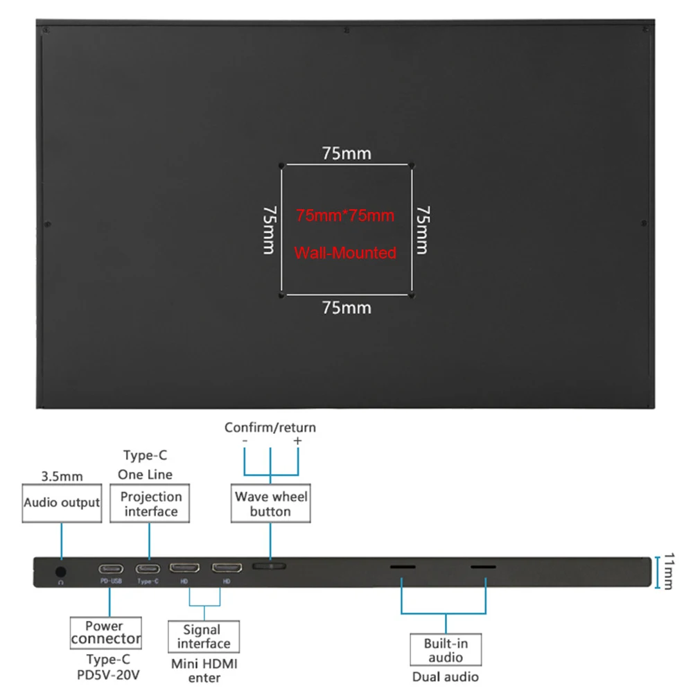 Стандартные 1 мини-HDMI порты, 1 TYPE-C 3,1 портов, 1 разъем для наушников, 1 TYPE-C PD интерфейс питания, можно легко подключить компьютер, стерео, наушники, игровые консоли и другие устройства к монитору