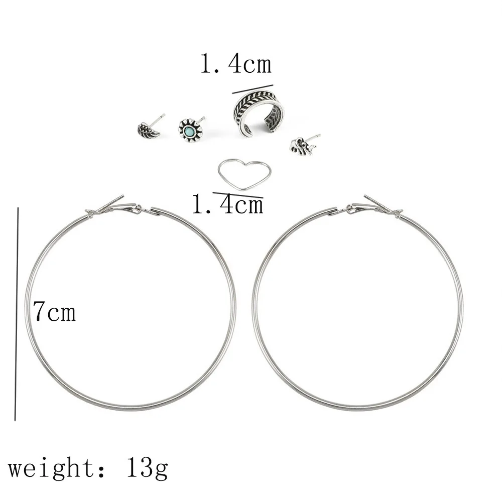 6 штsest богемные серьги винтажные антикварные женские большие серьги кольца любовь сердце слон оставить модные подарочные украшения для ушей