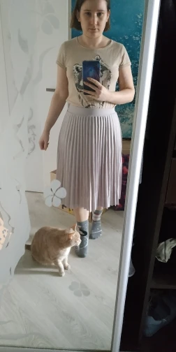 Заказываю второй раз, так как первую испортила по собственной глупости, постирав на 90 градусах. Юбка отличная, лёгкая, женственная. Летом не жарко.