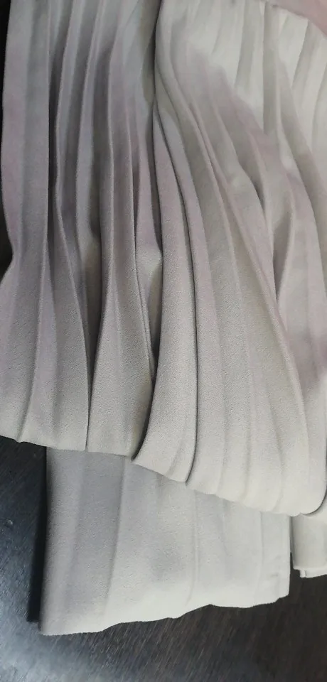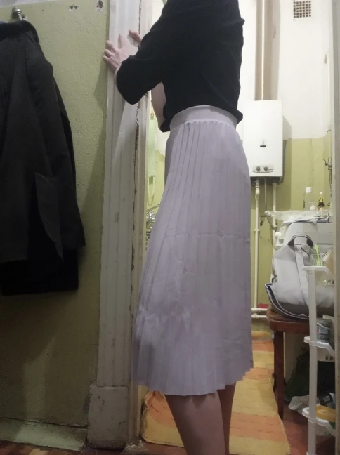 Юбка как на фото, правда цвет не такой серый, больше с каким-то сиреневым оттенком, никто почему-то об этом не говорит. На лето в жару не подойдёт, возможно кому-то и не жарко будет, но ткань не легкая, она плотная, шершавая. Пошита юбка хорошо, на талию 60 огромная, но исходя из таблицы я была к этому готова, ушью. Носить буду, ничего более подходящего на али не нашла. На рост 1.60 ниже колена примерно на ладонь, не просвечивает вообще, проверяла на чёрном белье