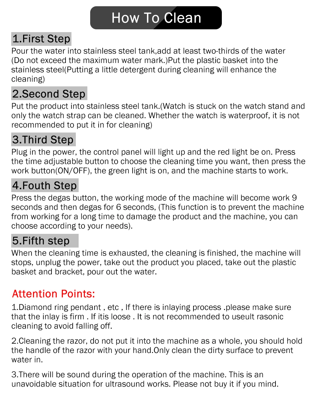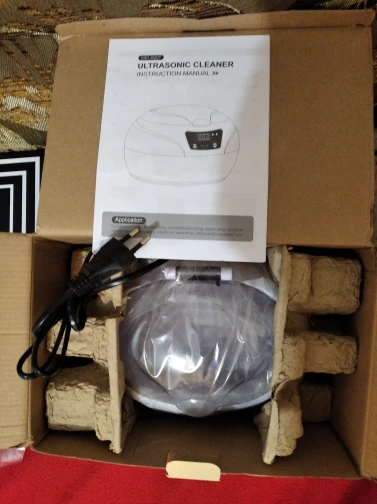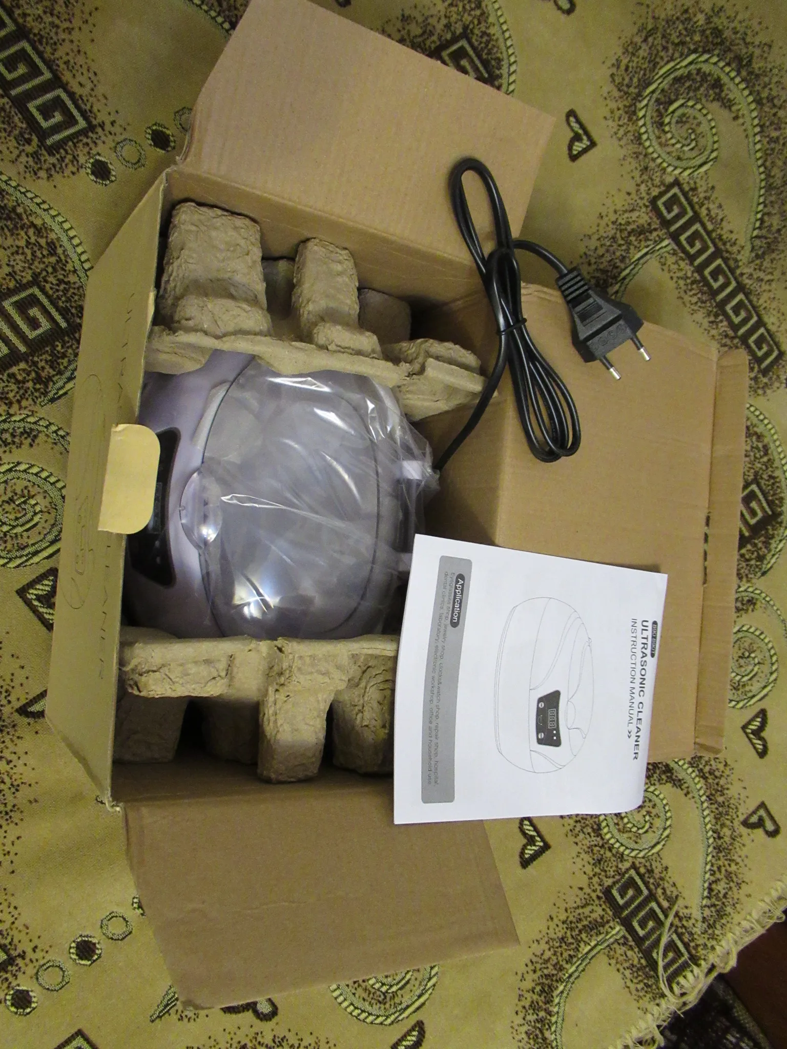 Заказ делала 15 июня. 22 доставили курьером до двери. пришла в коробке с контейнером для мелких предметов, стойкой для часов, инструкцией на англиском языке. Работает в двух режимах: бесприрывный и прирывистый с кнопкой degas. Серебро и золото без камней чистит хорошо, с камнями отмылось всë со второго раза. Забитые алмазные фрезы чистит отлично. Корундовые удовлетворительно (видимо мошьности маловато)