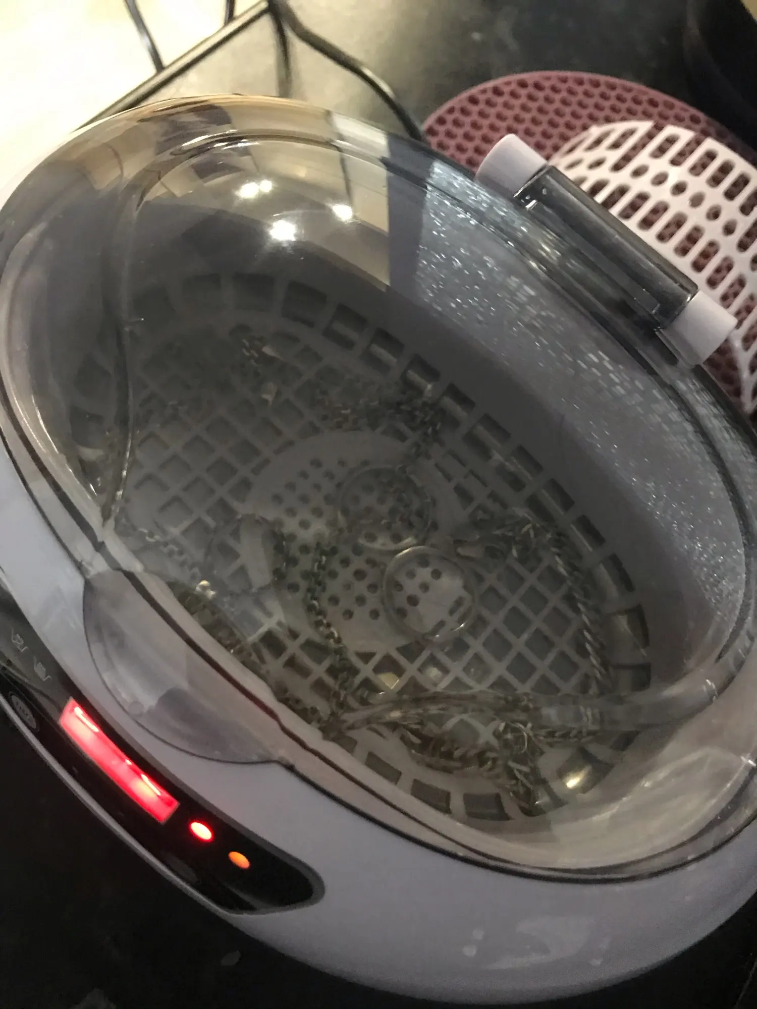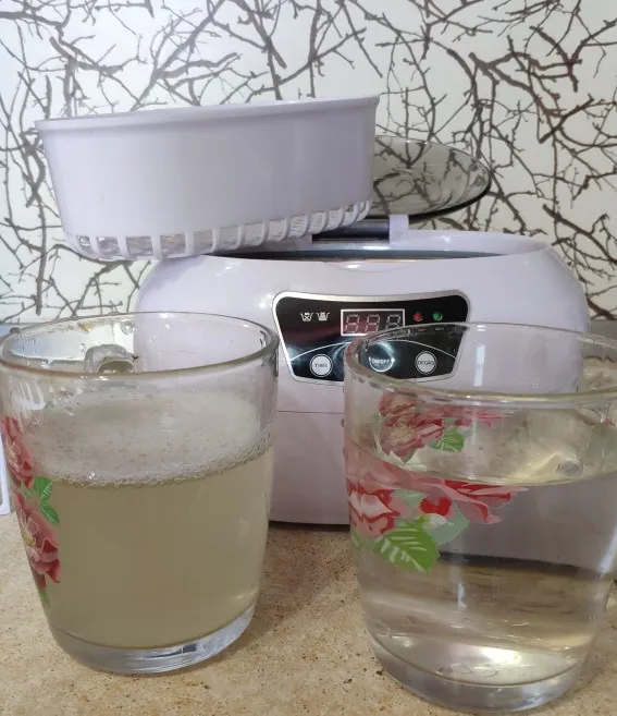 Доставка супер быстрая! Решила почистить ювелирные изделия. Серебро и золото у меня почернели со временем. Хотела избавиться от почернения. Три раза прогоняла аппарат. Сначало в чистой водой, потом с Фери, затем с чистином. Вода изменила цвет. Но желаемого результата я не получила. Хорошо отмылись глазки, засверкали. Что то почистилось, а что то осталось почерневшим.