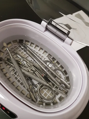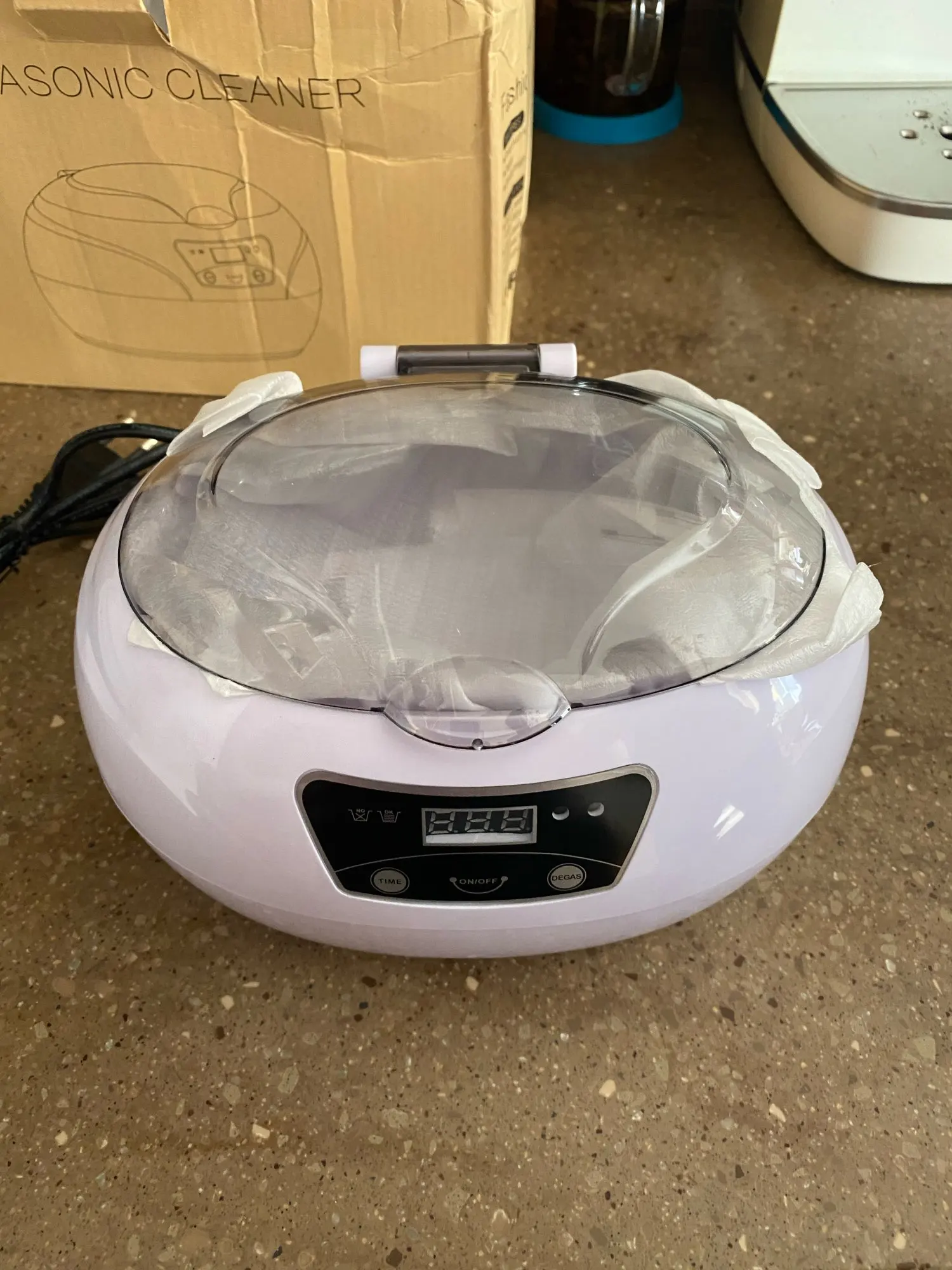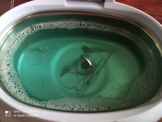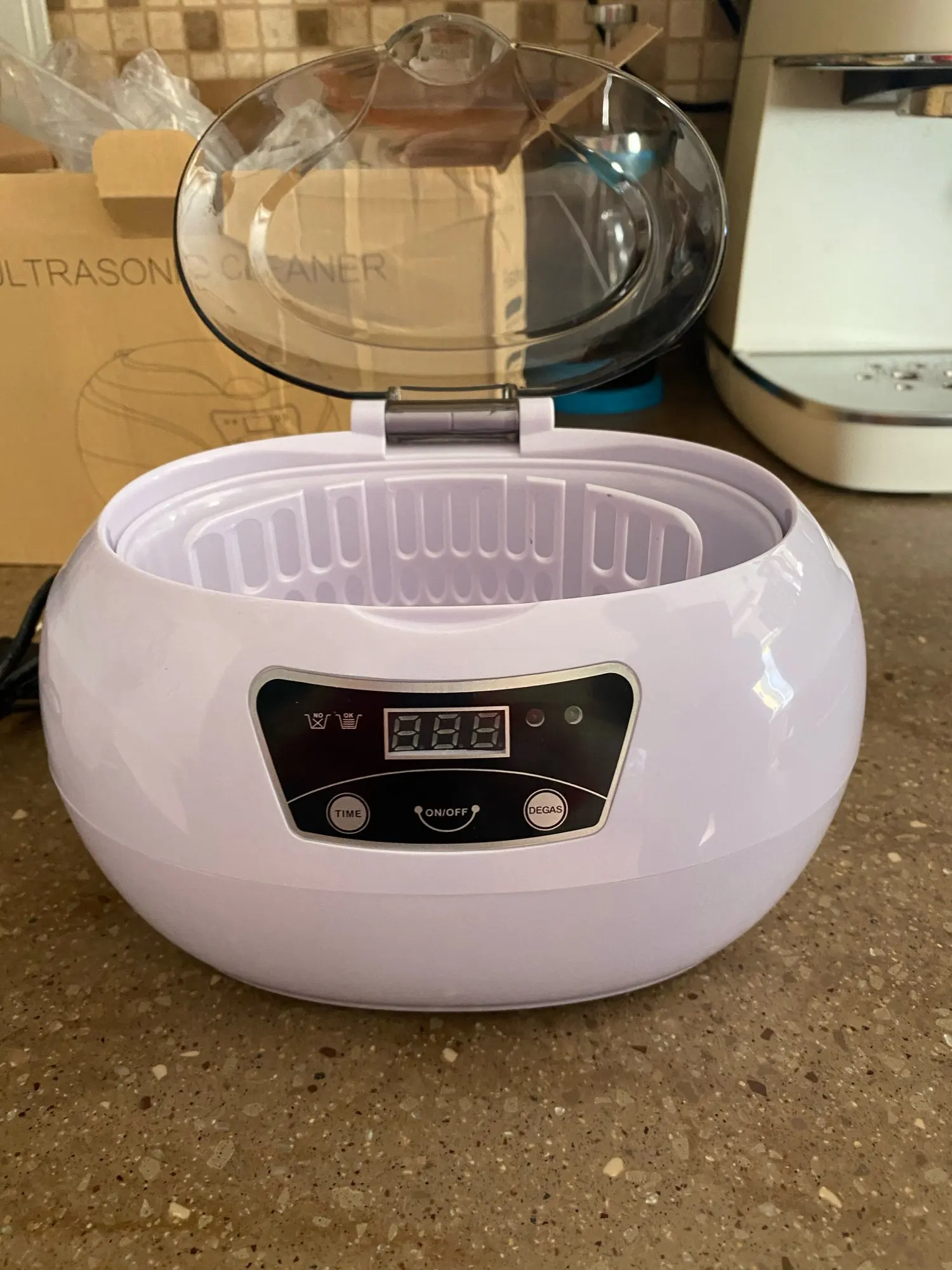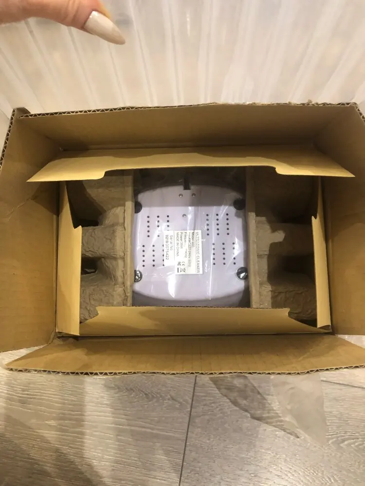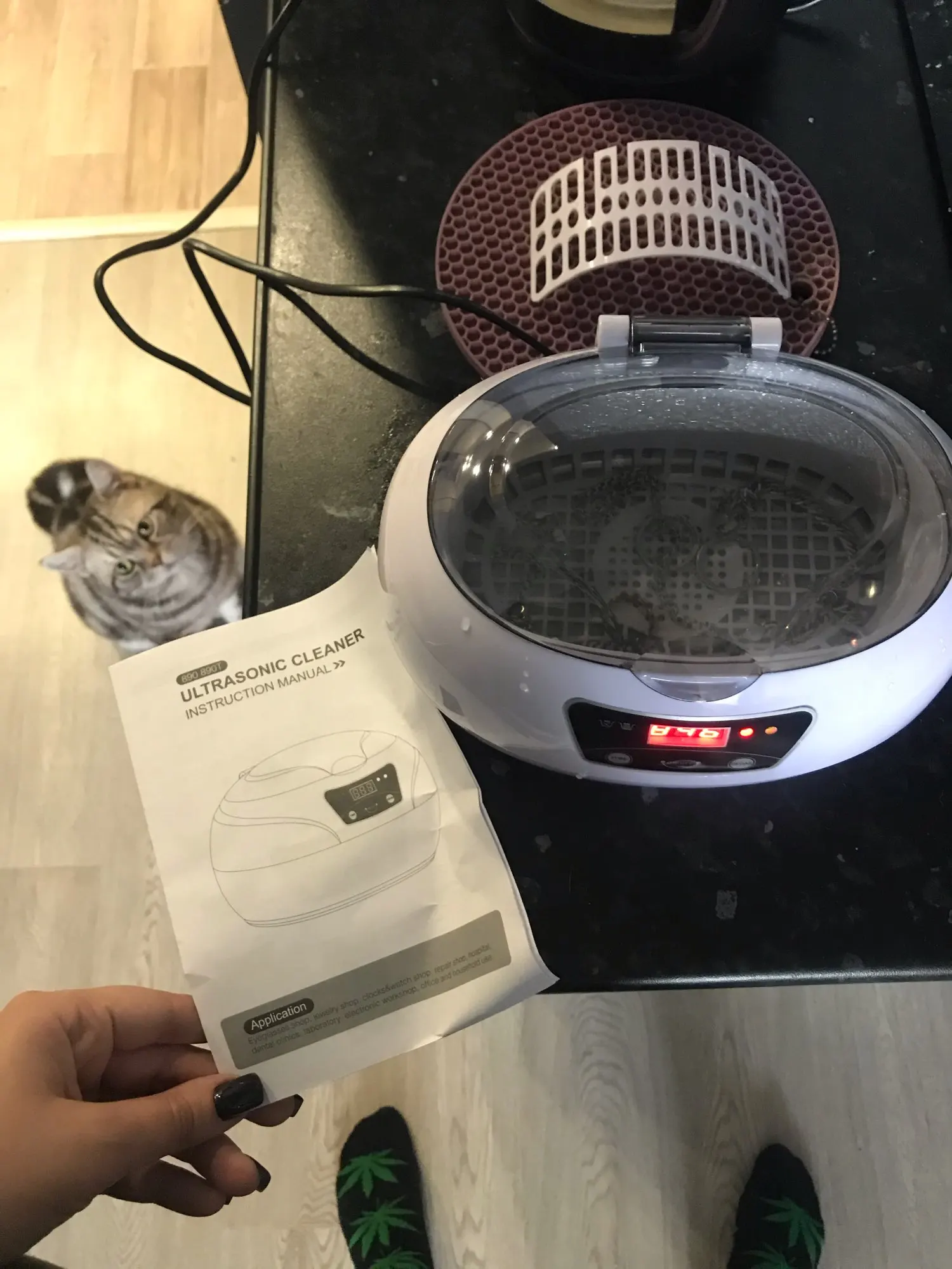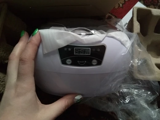 Доставка супер быстрая, около 10 дней! Испробовала на металических типсах, засохший пигмент отлично отвалился. Рекомендую замачивать в растворе например аламинола и запускать режим прям в ванночке. Так же отлично отбивает мелкую пыль и грязь с украшений и очков. Из минусов маленький объём самой ванны, много туда не засунешь.