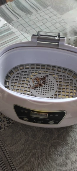 Доставка мега супер пупер быстрая в использовании все предельно ясно фрезы для маникюра чистит супер а потом решила провести сложный тест. Кто курит кальяны, знает как сильно загрязняется калауд и этот нагар не отшоркать абсолютно ни чем и ни как . Так вот опыт был в том сможет ли мойка удалить грязь. Воду с уксусом я положила калауд. Мойку включала 2 раза на макс время. Она абсолютно расщепила весь нагар, и даже делали которые не отошли, просто обычной мягкой щеточкой отошли. Браво рекомендую