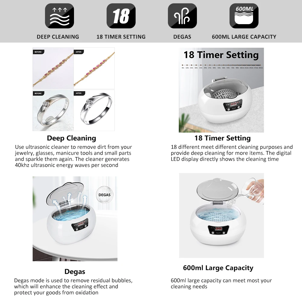 Ультразвуковой очиститель Chovery для ювелирных изделий, 600 мл
