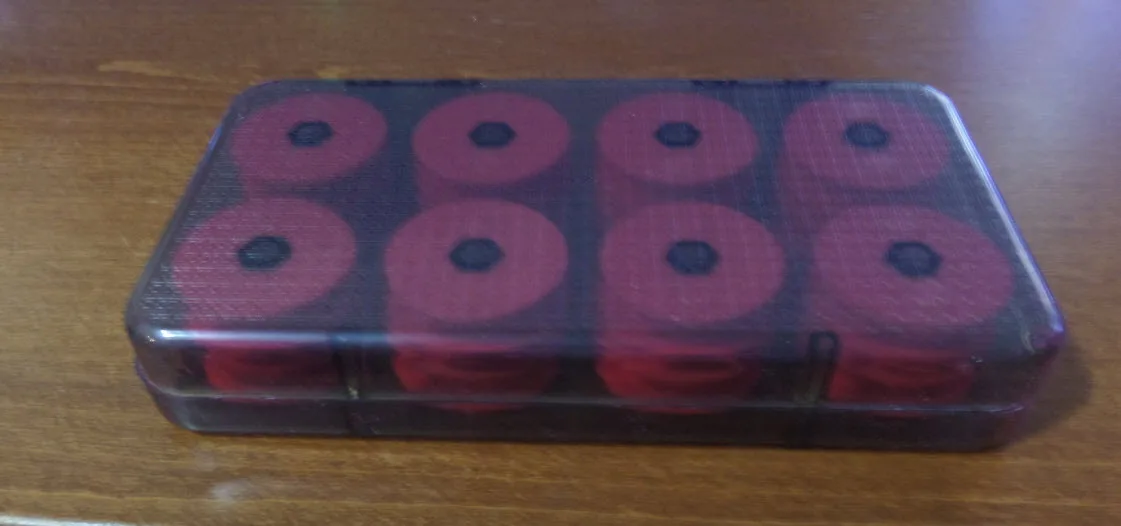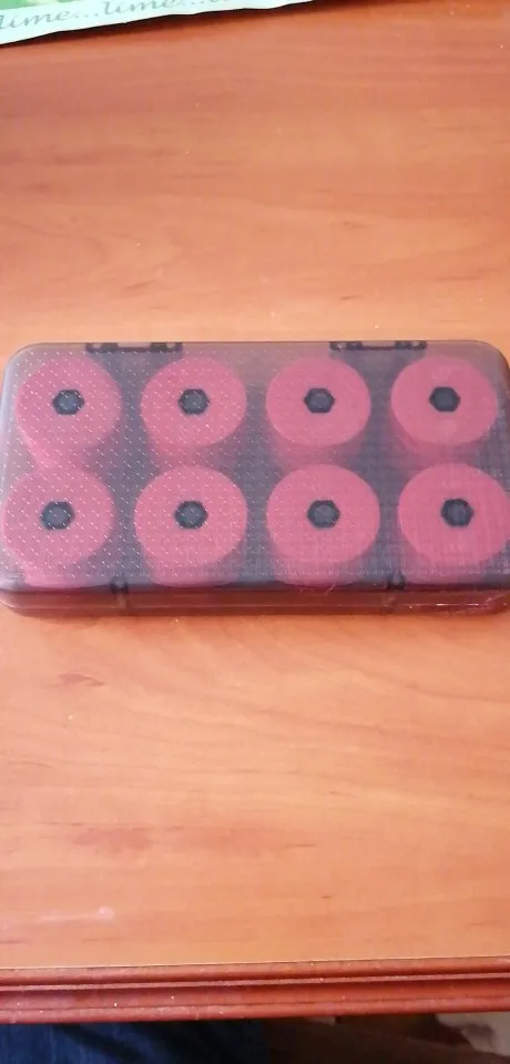 Сделано не плохо. закрывается на магнитиках, что очень удобно. Катушки не большие, но мне как не профессионалу подходят. достаточно мягкие. Стикеров для подписи катушек с товаром не было. Быстрая доставка.