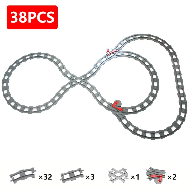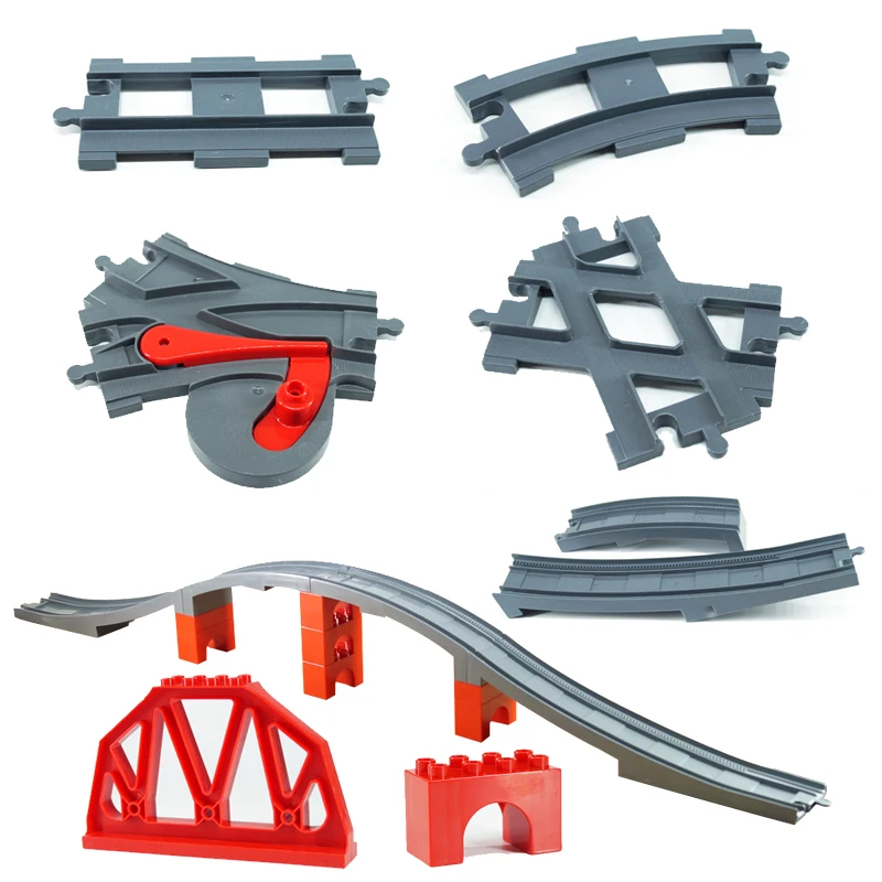 Набор игрушек блоки большого размера, железнодорожный путь на батарейках, мост, для детей, креативные строительные блоки, совместимы с блоками большого размера