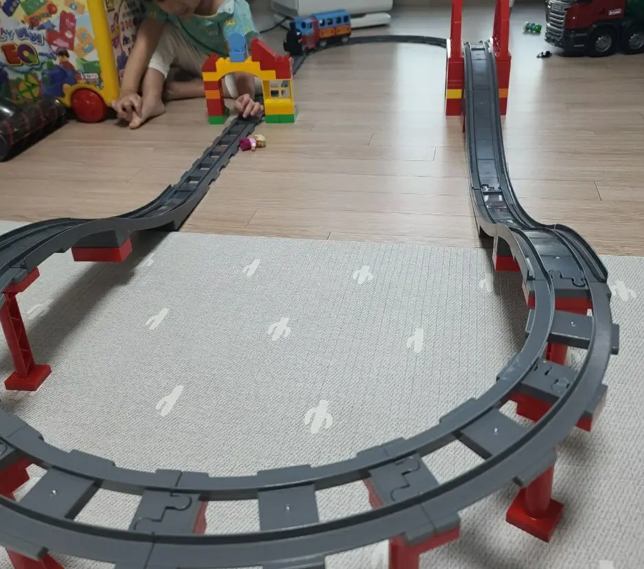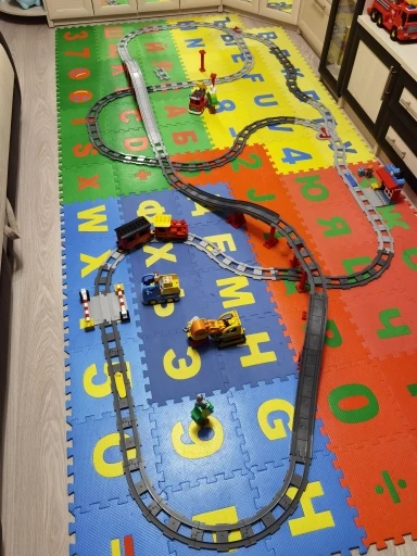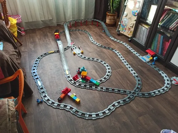 Посылка пришла быстро, в Москву за 2 недели. Упаковано все было основательно, в несколько слоев пупырки, ещё и каждый набор рельсов в отдельном пакетике. Рельсы отлично подходят к Duplo, но по цвету сильно темнее и в качестве пластика немного уступают. Но зато сколько теперь вариантов для строительства дороги))