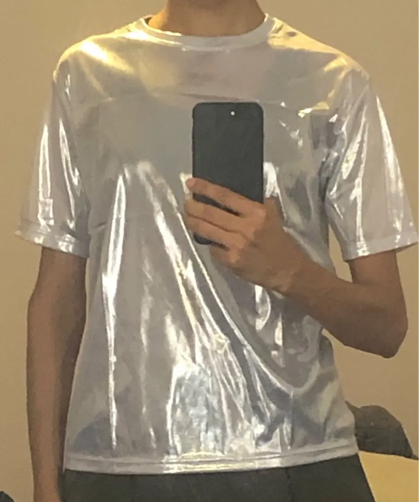 Футболочка огонь! Яркая блестящая, выглядит супер, к телу очень приятная. Спасибо! Я в восторге!