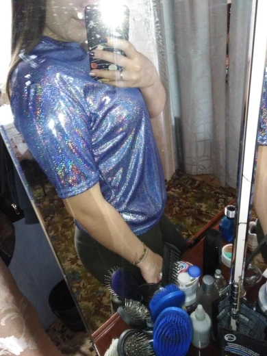 Футболочка супер! Прямо переливается вся!))) сшита аккуратно, пришла быстро, рекомендую к покупке!