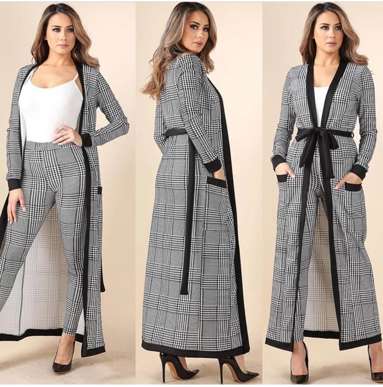 Женский Повседневный костюм из трех предметов, клетчатый костюм с п...