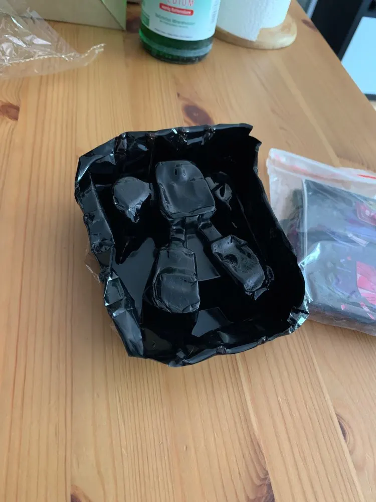 Был заказан рисунок с коробкой. Товар был доставлен без коробки, плохо упакован и поврежден. У этой фигуры сломанная стопа, которая является раусгеброшеном и недостающей частью пушки мордочки. Невозможно изменить фигуру.
