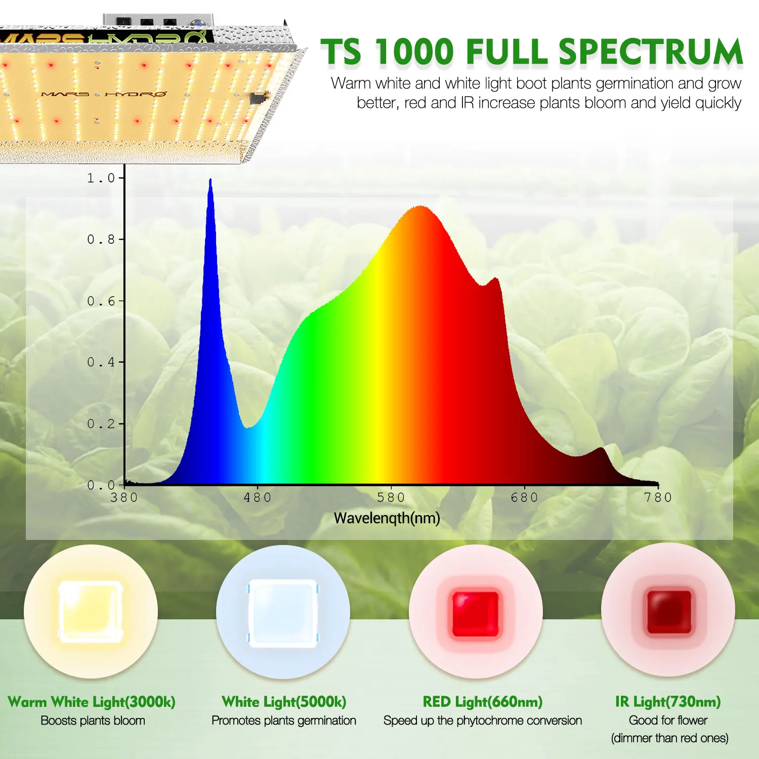 MarsHydro TS 1000W Затемняемый светодиодный светильник для выращивания Полный спектр Гидропонная система для комнатных растений с растущей палаткой светодиодная лампа квантовая плата