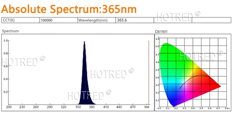 Неплохой светодиод. Заказал пока версию 20 Вт для экспериментов в области флуоресцентной микроскопии. Если задуманное получится, закажу версию 50 Вт или 100 Вт. Данный диод имеет незначительное излучение в видимом спектре, так что его следует использовать в сочетании с ультрафиолетовым фильтром блокирующем видимое излучения. С помощью приборов пока не проверял, но по опыту, думаю, мощность и длина волны соответствует заявленной.