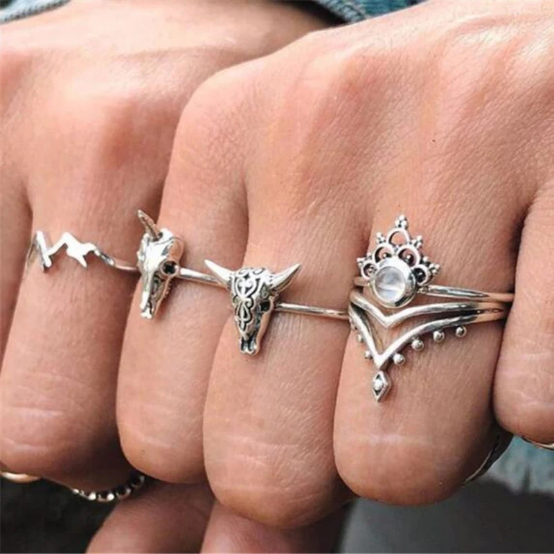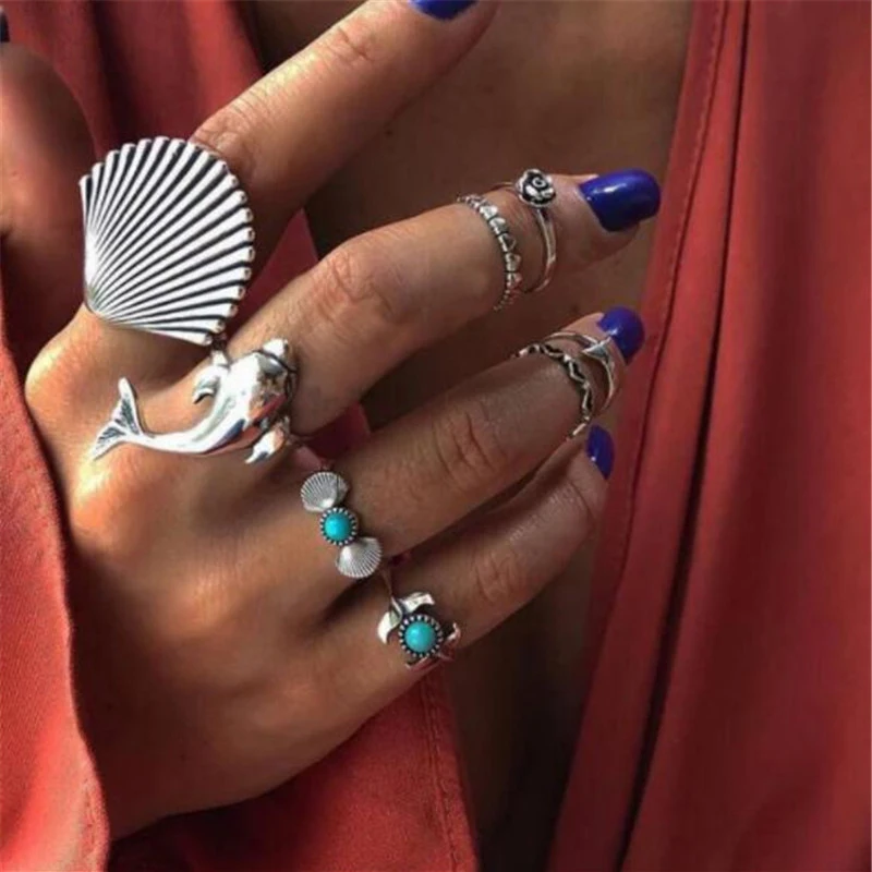 10 шт.компл. богемные женские винтажные серебряные Колечки выше кос...