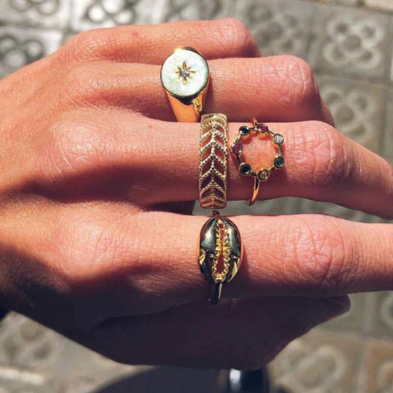 Винтажный набор колец на костяшки пальца с золотым кристаллом и опа...