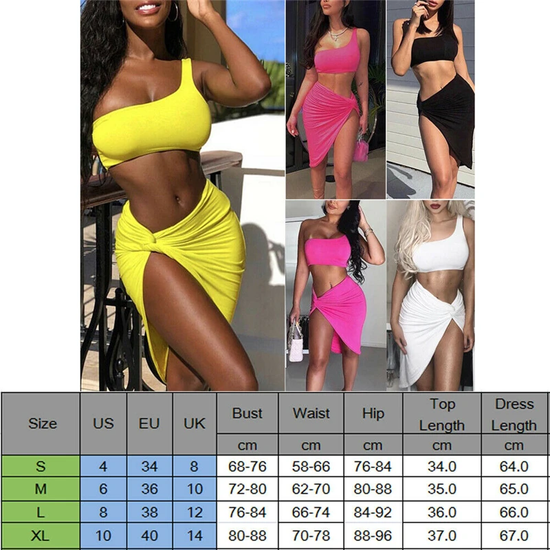 Женский вечерний клубный комплект из двух предметов, облегающий бандажный костюм на одно плечо, комплект: укороченный топ и юбка