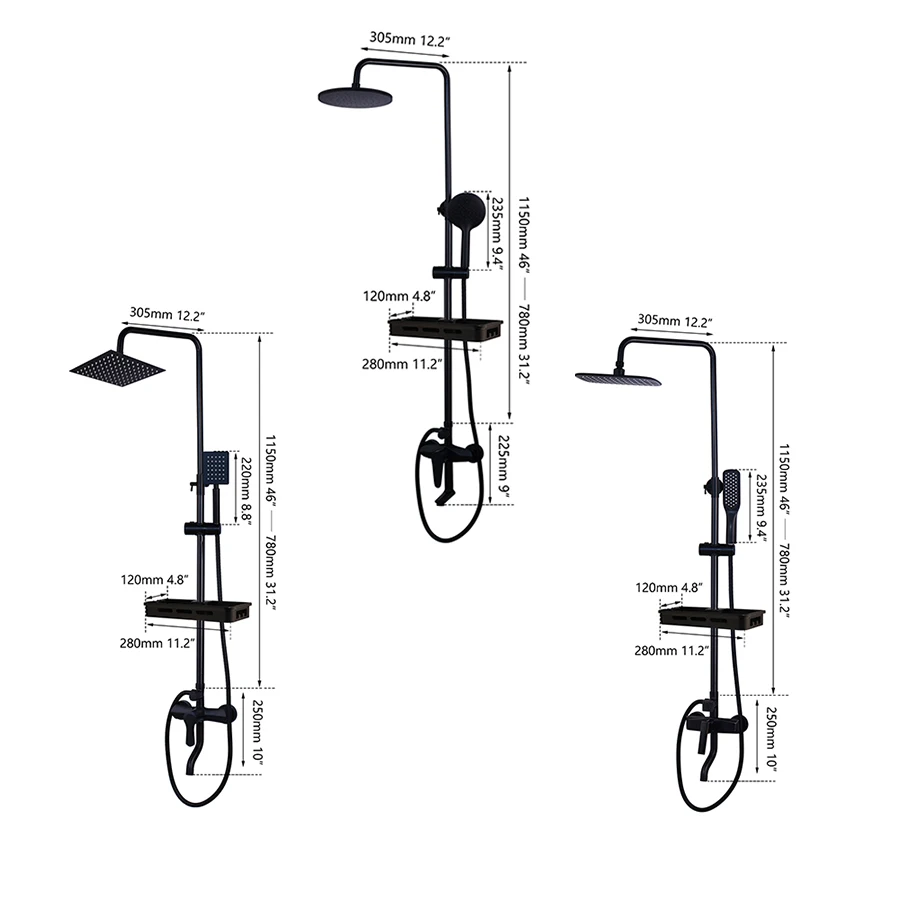 Смеситель для душа и ванны, однорычажный, черный, с полкой для хранения