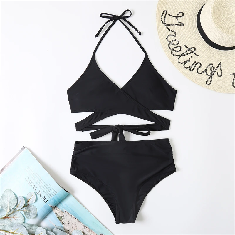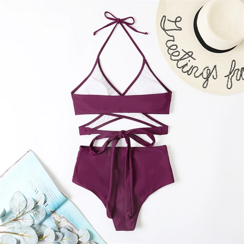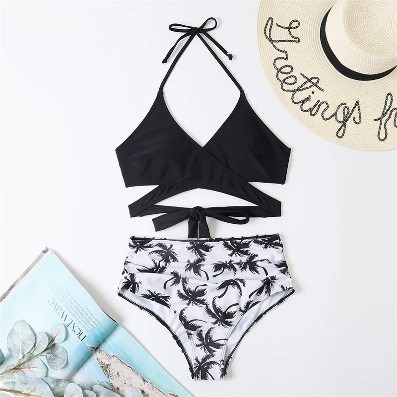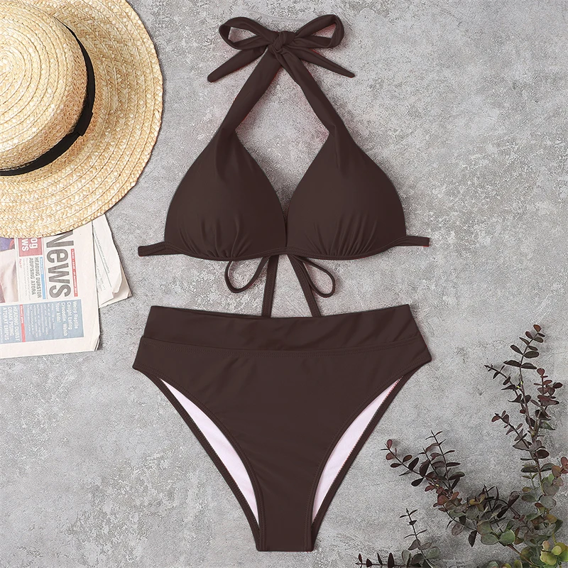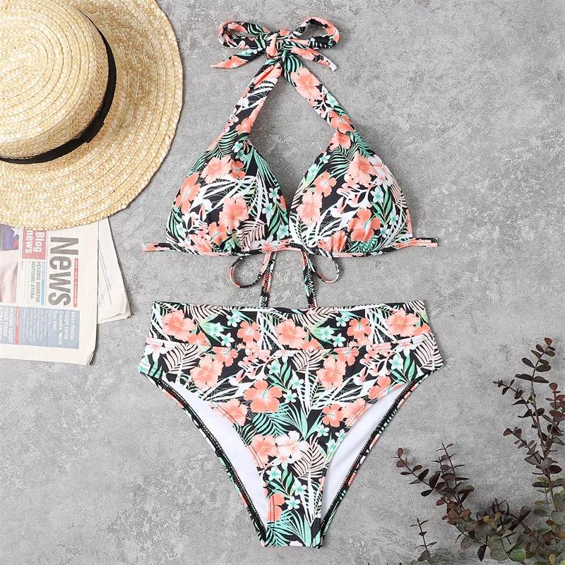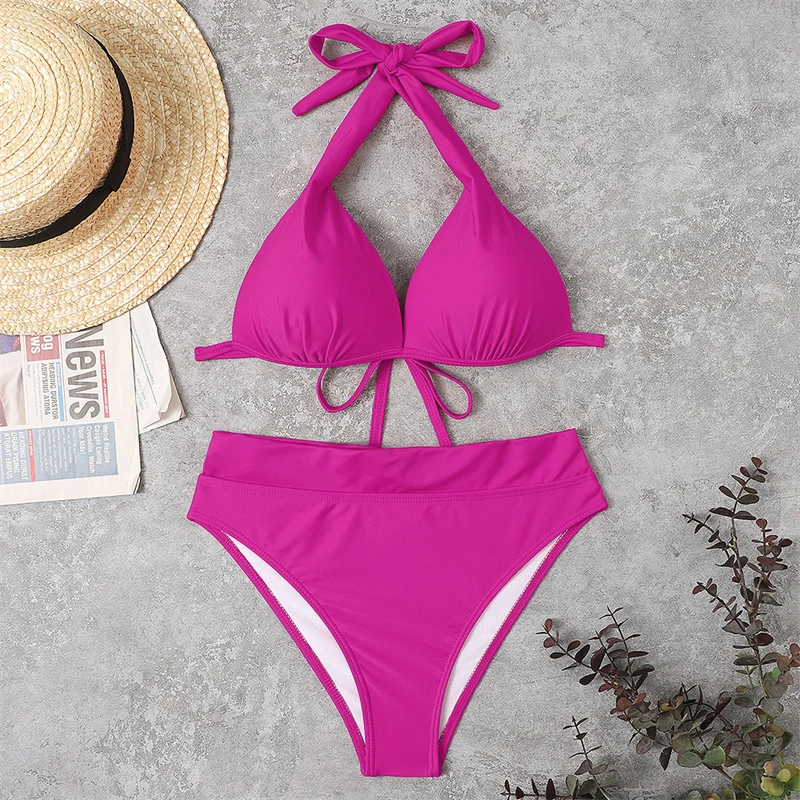 Бикини пуш-ап женское из двух предметов, с завышенной талией
