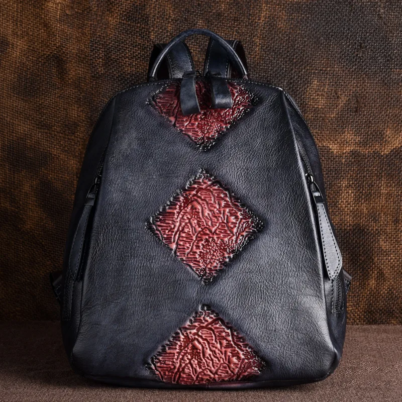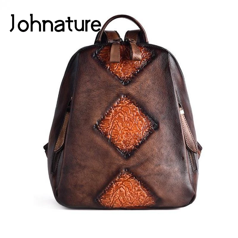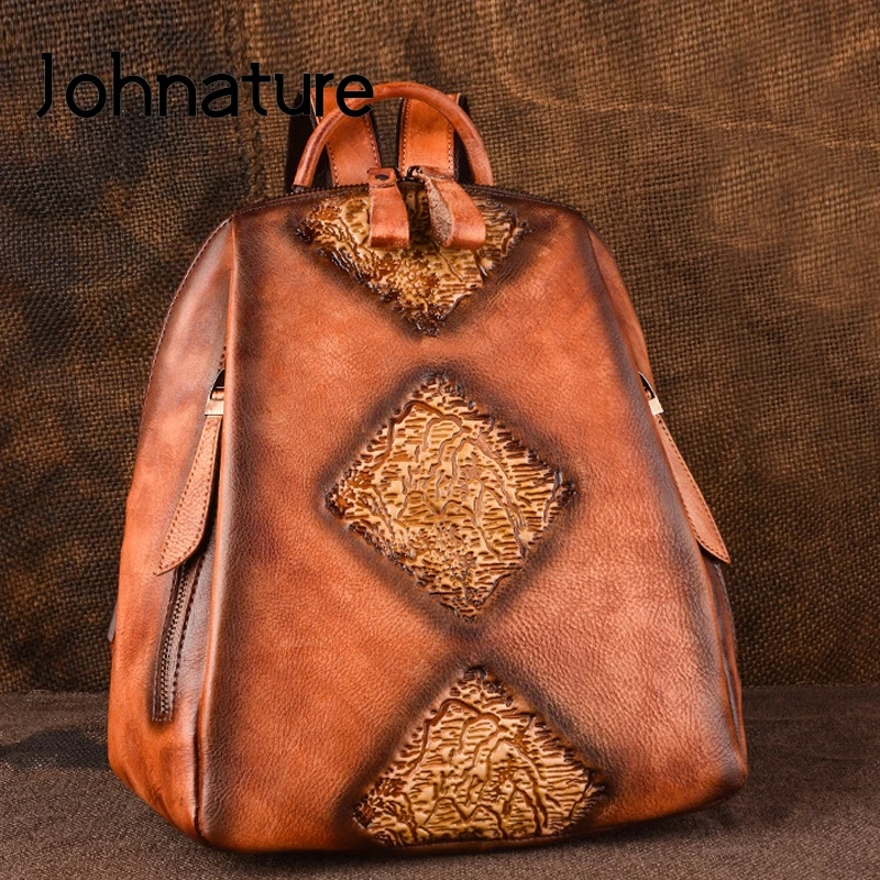Женский рюкзак из натуральной кожи Johnature, Большой Вместительный рюкзак ручной работы в стиле ретро, однотонный дорожный рюкзак из коровьей кожи с тиснением