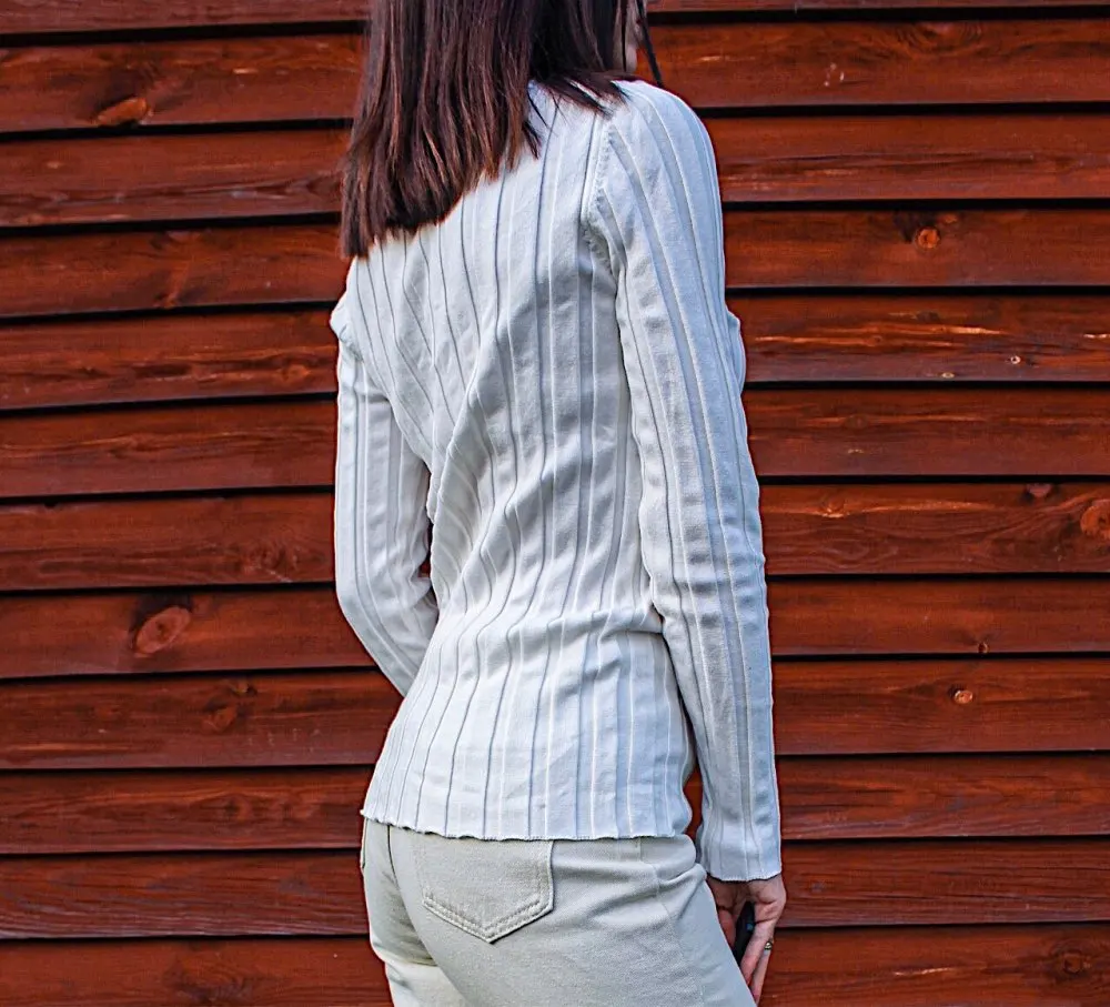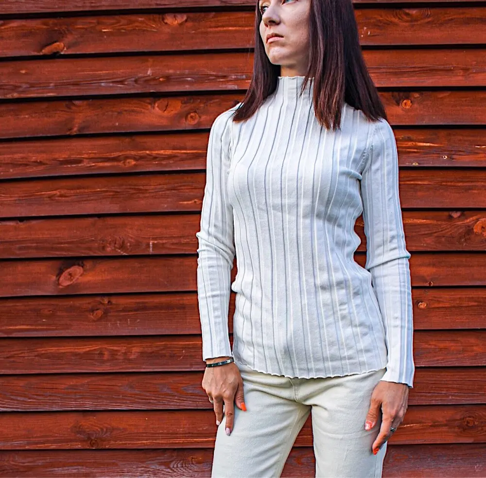 Свитер женский хлопковый в рубчик, с ложным воротником, Осенний