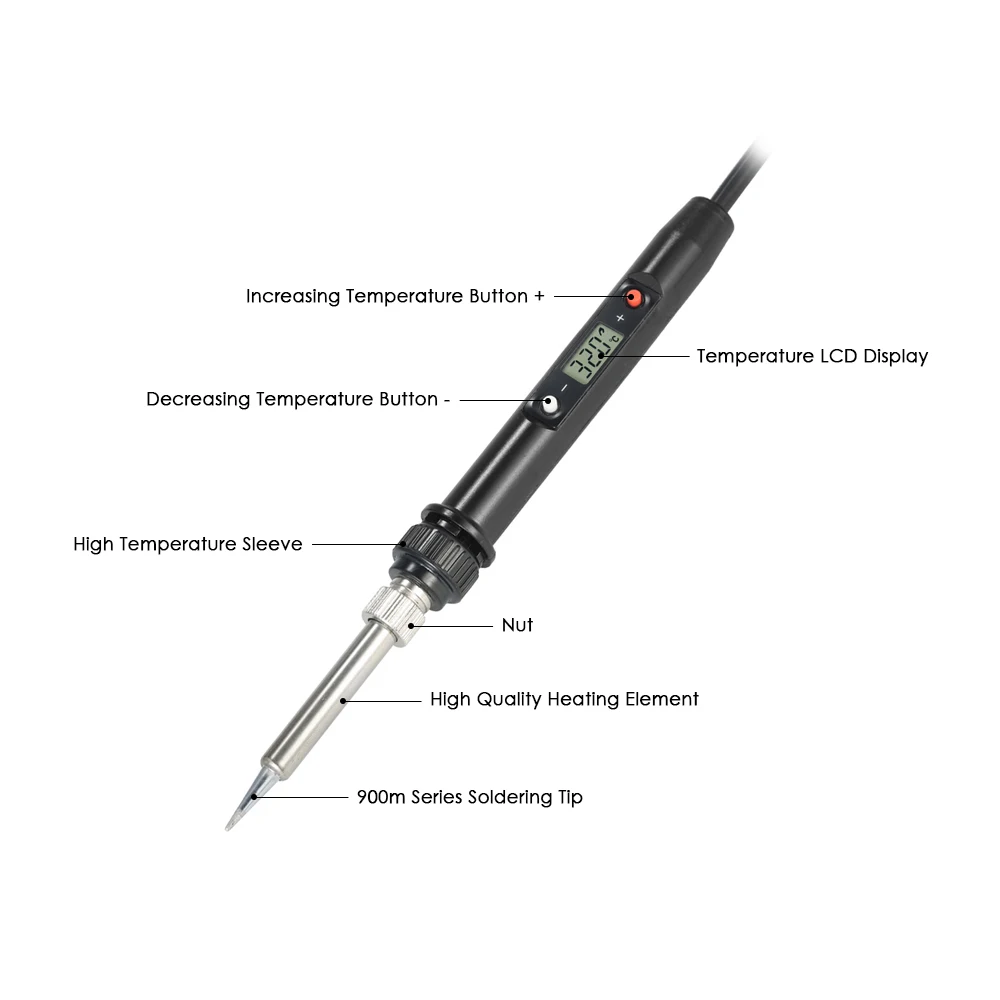 Комплект электрического паяльника поставляется с ЖК-дисплеем и наконечником нагревателя T13. Он имеет функцию настройки температуры, которую вы можете настроить на подходящую температуру для различных проектов. Это отличный инструмент для электроники, компьютерного оборудования, ремонта часов и других ремесленных проектов.