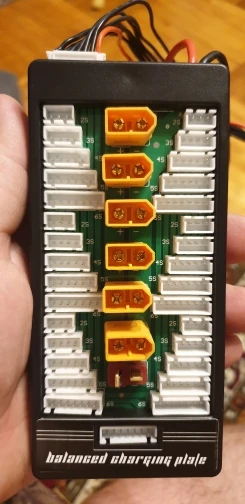 Супер для параллельной зарядки. Качество изготовления по цене заказа. Отверстия от балансировочного кабеля следует слегка увеличить, а затем лучше использовать вилку. Я использую его для трех аккумуляторов 2S и не было никаких проблем. Напряжение для зарядки аккумуляторов не должно сильно отличаться друг от друга. Максимум 0,1 вольт на ячейку (таким образом, 0,2 В при 2s батарее, 0,3 В при 3s и т. Д.). Однако емкость аккумуляторов может отличаться. Вы можете использовать lipo 7,4 В 1500 мАч с зарядкой lipo 7,4 В 2200 мАч, если у вас одинаковое напряжение (Z. B. 8 в и 8,14 в).