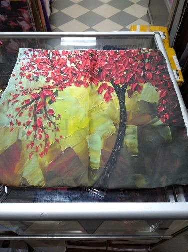 На фото рисунок намного лучше. В живую он не такой красочный. Ткань тонкая. Доставка быстрая.