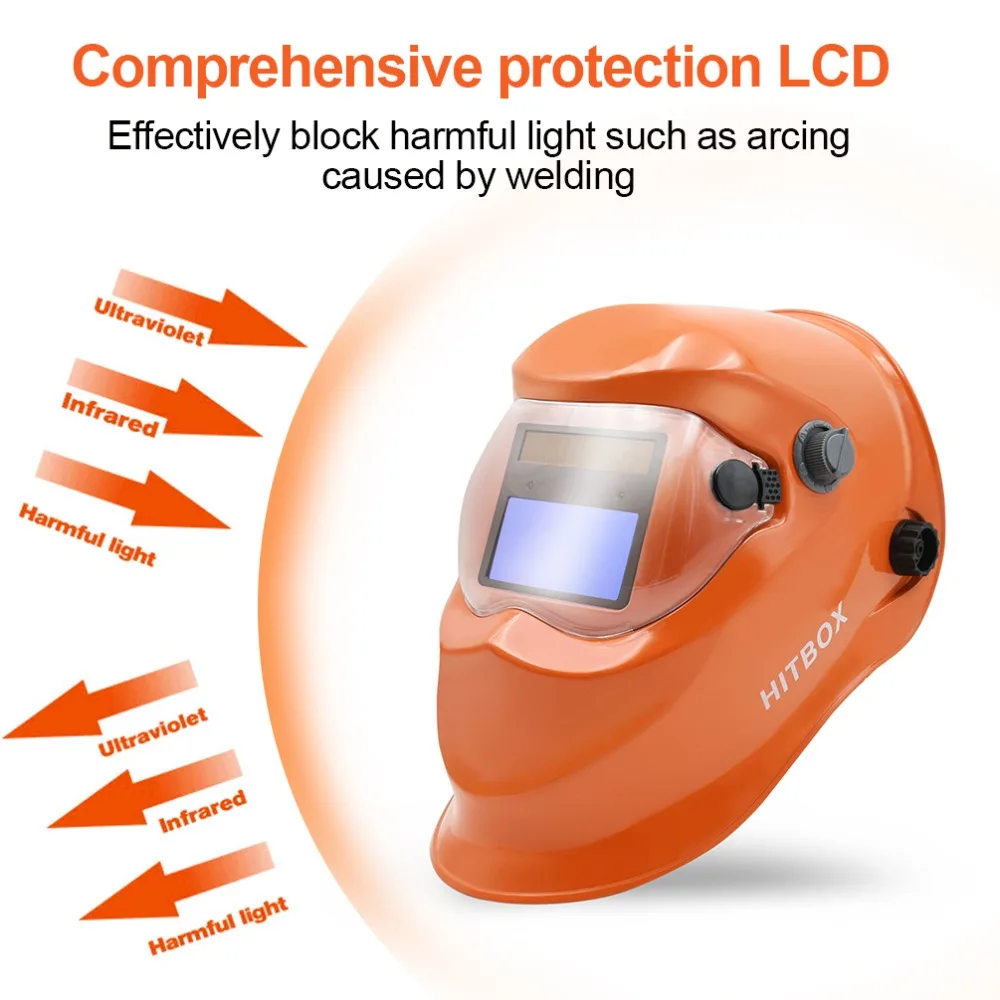 Шлем сварочный HITBOX с автоматическим затемнением, профессиональный цифровой шлем для сварки, с большим обзором, с функцией затемнения
