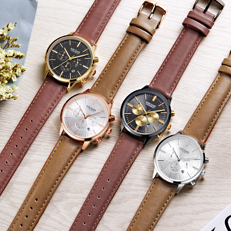 Часы MEGIR Мужские кварцевые с хронографом, роскошные повседневные ...