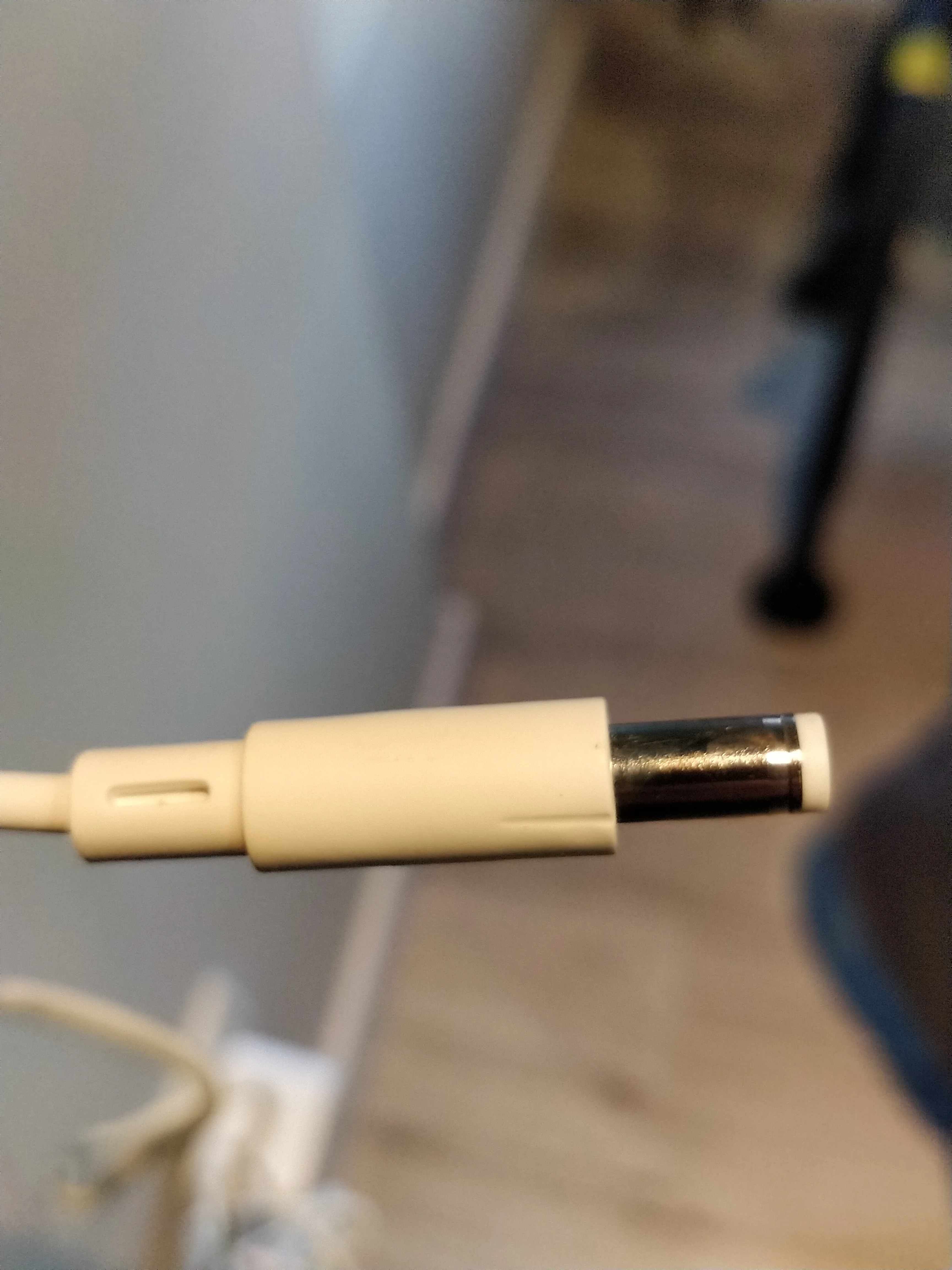 Не тот же кабель, но работает. Полученный кабель не имеет изгиба на штепсельной вилке, как на фото