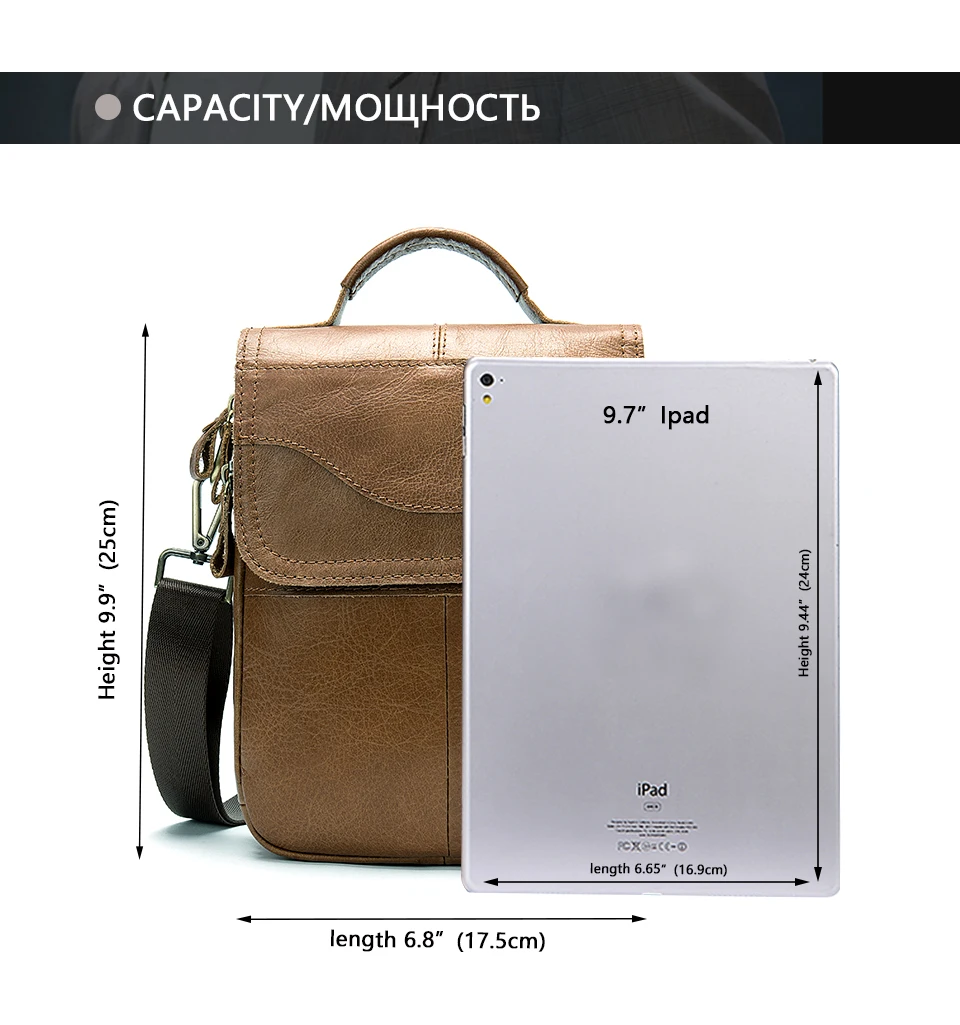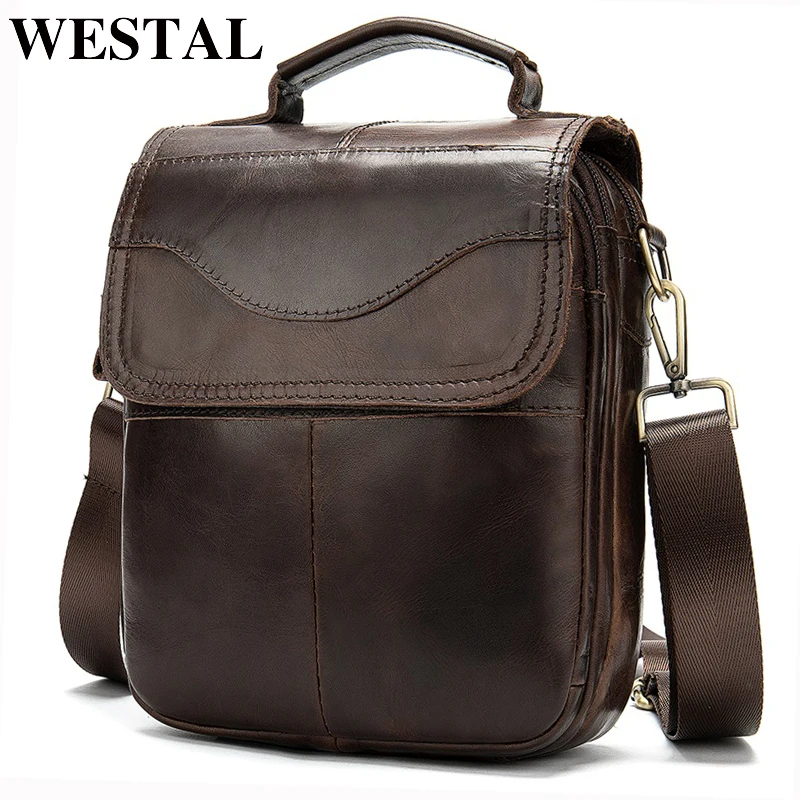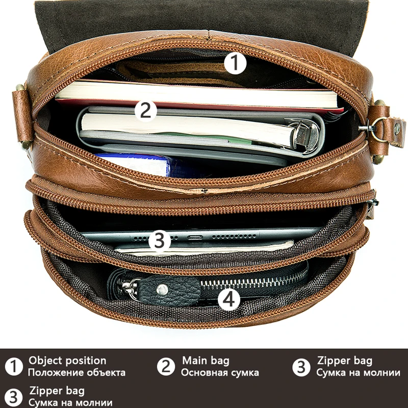 Сумка-мессенджер мужская из натуральной кожи, на молнии, 8558