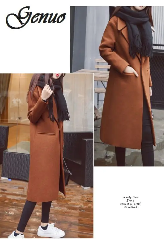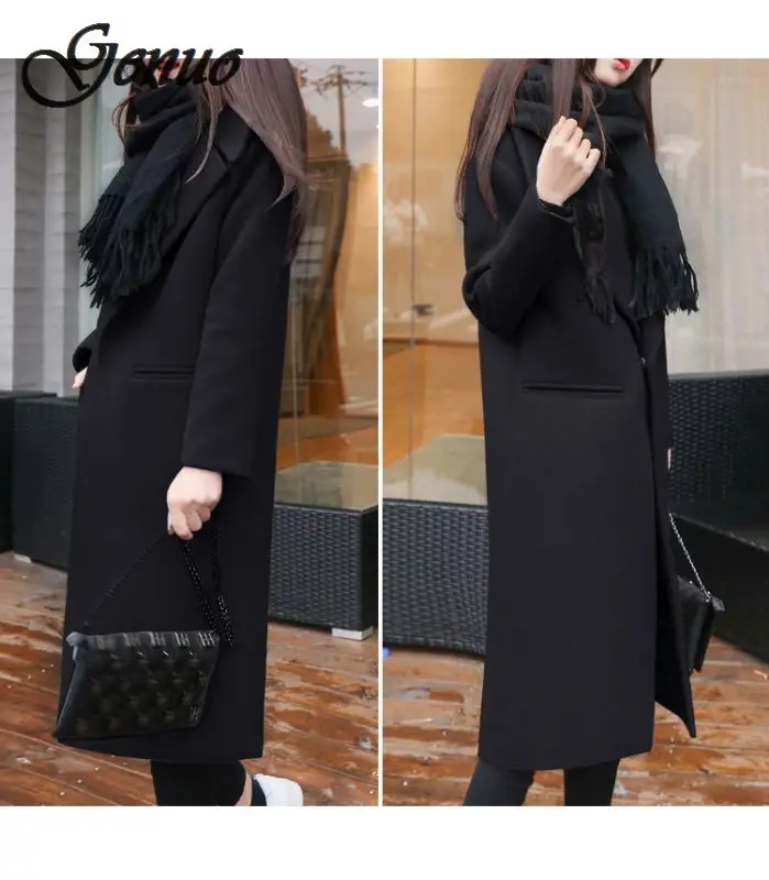 Женское шерстяное пальто, желтое пальто большого размера плюс, Длинная черная приталенная верхняя одежда на осень и зиму