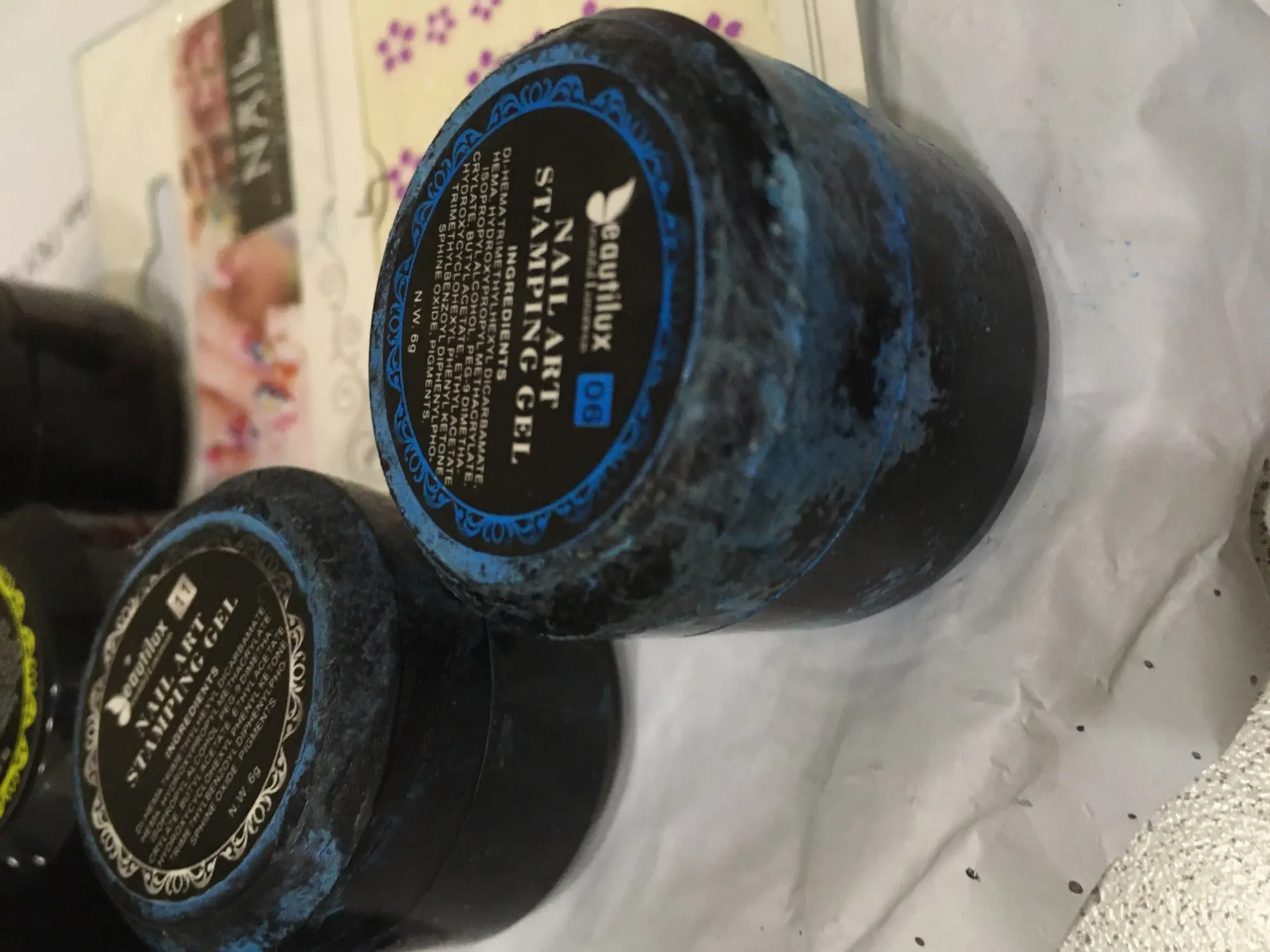 Я тоже теперь в ряду фанатов этого бренда)))Заказала на распродажу 11.11 курьер принес на дом восемь баночек красок для стемпинга и матовый топ все идеальные продукты!наклейки и неоновая краска подарок продавца.Топ имеет липкий слой,мутноват,но не замутняет поверхность после просушки на ощупь очень приятная бархатистая .Краски брала для китайки и вензелей-супер одним словом все прошло испытания.Рекомендую безоговорочно!