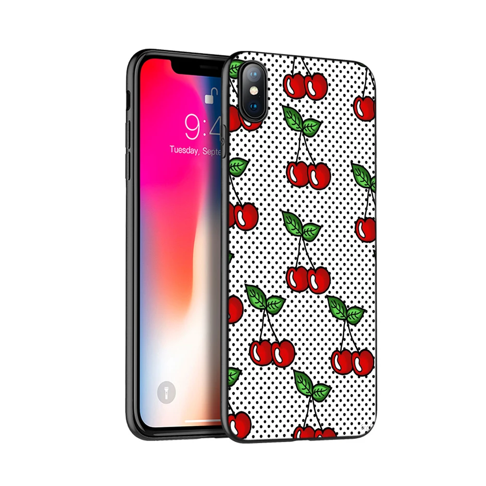 Черный чехол из ТПУ для iphone 5 5s se 6 6s 7 8 plus x 10, силиконовый чехол для iphone XR XS 11 pro MAX с изображением фруктов, вишни, клубники