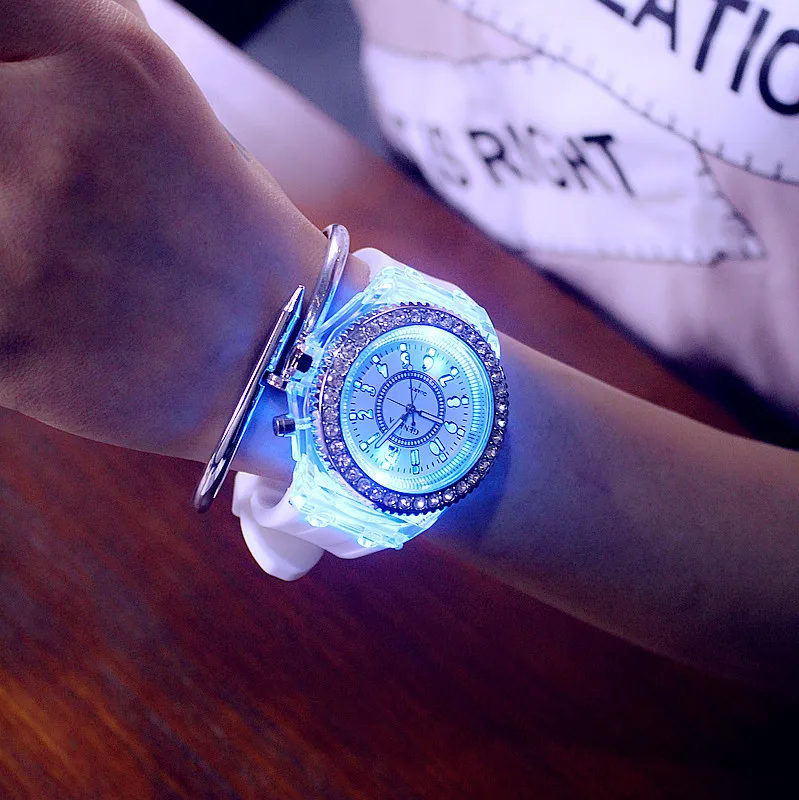 Модные светодиодные светящиеся женские часы с силиконовым ремешком,...